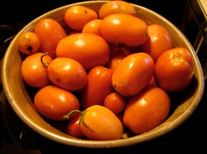 I picked these paste tomatoes from our local CSA, but you can just as easily (well, more easily, really!) make them from a can of tomatoes. But use a can of good tomatoes – fire roasted is nice!