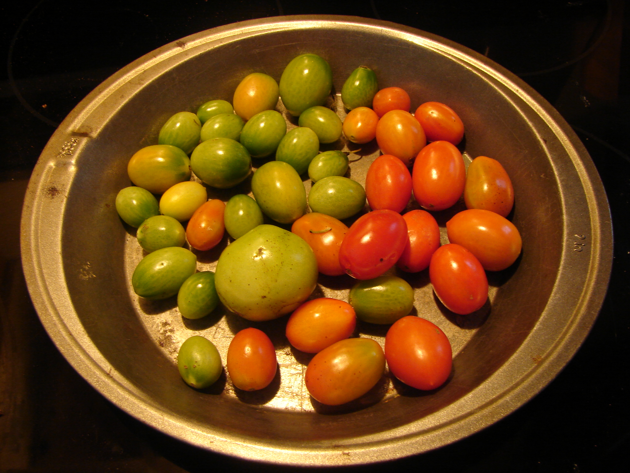 At this point, if you had a saucepan that could go in the oven, you would arrange the tomato slices prettily in the pan you sauteed them in. If, like me, you don’t have such a pan, you put them in a pie plate, trying to make them look pretty if you have time, or pretending you really want them to be in a wild and messy jumble if you don’t.