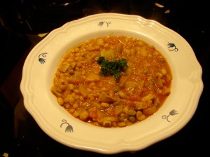 I’m calling this a paella because it has a rich, saffron-infused broth. If you’re a paella purist, however, you can call it fennel-artichoke heart-white bean stew. Either way, it’s a warm and flavorful meal for a chilly fall evening. I serve it with basmati rice, because that’s my favorite, and some nice crusty bread.