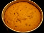 6. Bake in a preheated 350 degree oven for 30 minutes or until it’s brown on top, pulling away from the sides, and if you touch it lightly with your finger it springs back up. Let it cool in the pan before you turn it out onto a plate. At this point I sliced the almond/coconut cake in half and spread cherry preserves in the center, and then sandwiched it back together again.