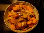 I’m slightly obsessed with star anise at the moment! It’s so pretty and so tasty. Warm, a little sweet, a little spicy. I have several bunches of carrots from the CSA, and this seemed like a nice thing to do with them. Simple, satisfying, the sweetness of the star anise complements that of the carrots, but lets them shine in all their carrotyness. You could make this without the fennel, but it seemed to fit so perfectly, being another fall veg with a sweetish edge, and matching nicely with the flavor of the anise. This is good warm when you make it, and cool as a little salad the next day.