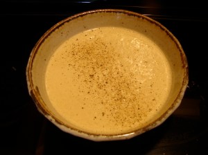 4. Bring to a boil, and then lower the heat and cook for about half an hour – you need to cook it this long, even if it seems done sooner. Stir frequently, but not constantly. Have extra broth nearby, and add more as the sauce thickens. You want it to be the consistency of heavy cream at the end.