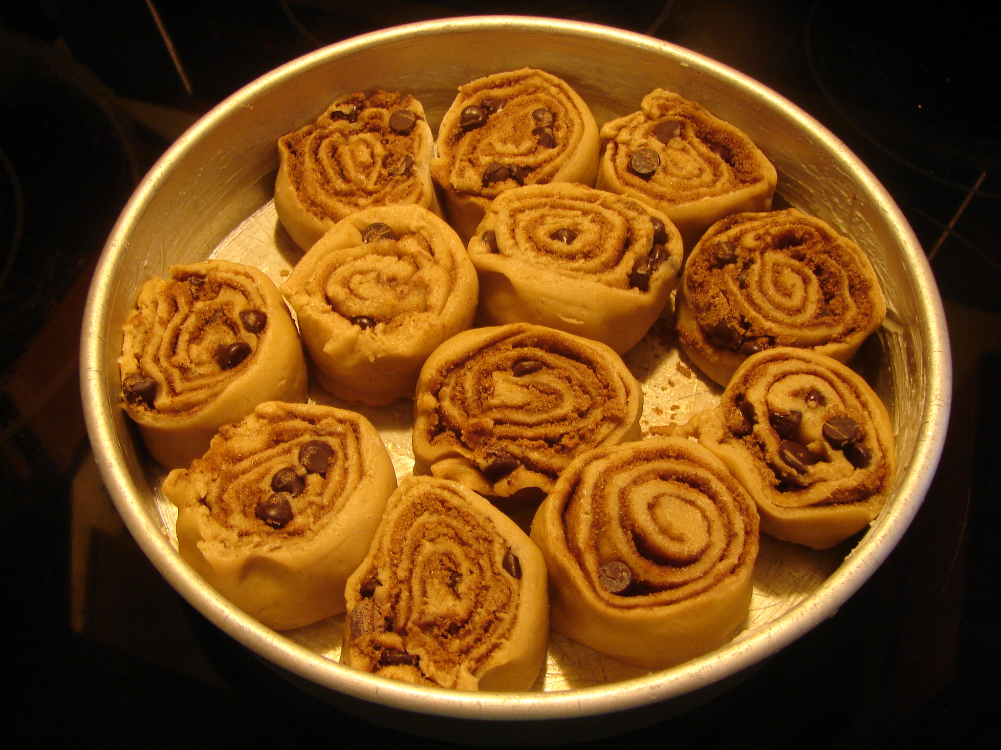 So I decided to make a cinnamon bun with a pastry element you’d like to eat by itself. And I decided to add bittersweet chocolate chips, because everything is better with chocolate chips. Especially on a cold and rainy day, such as we’ve had lately.