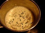 1. Warm the milk with the herbs, salt and pepper till just boiling, over medium-high heat.
