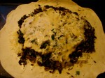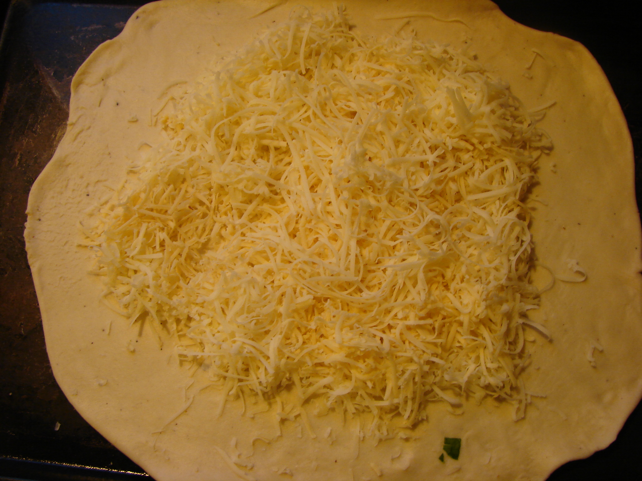 Spread your grated cheese over this, leaving an inch and a half margin around the edges.