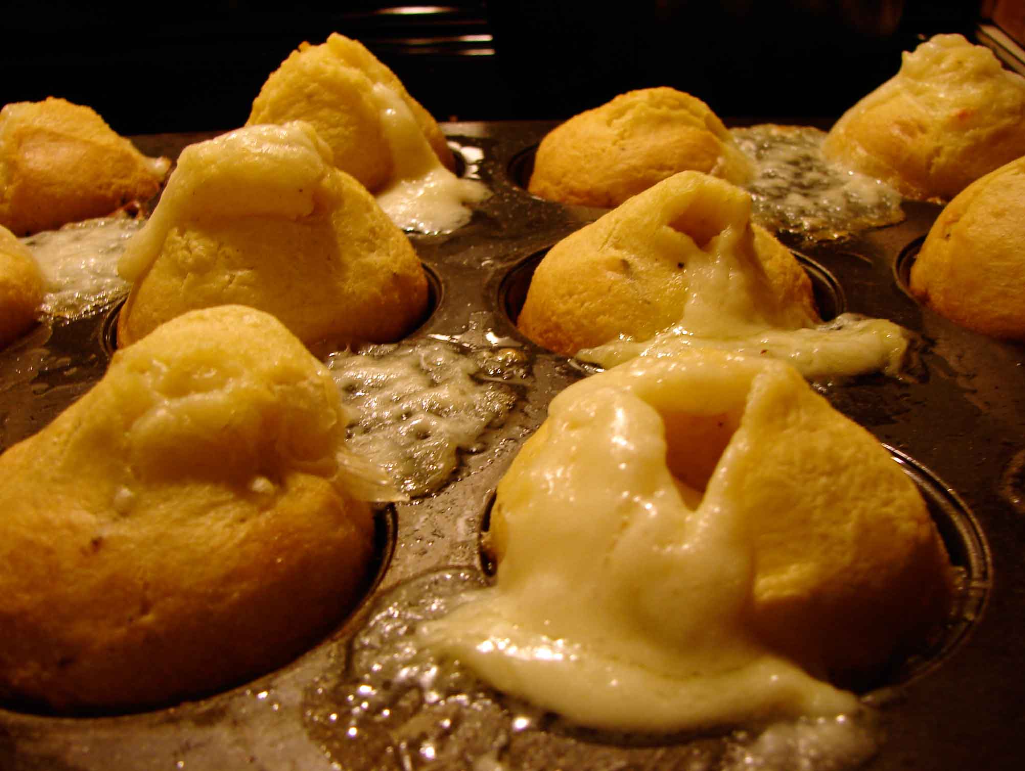 Bake for about 20 minutes, till the muffins are golden and risen, and the cheese is melted and bubbling.
