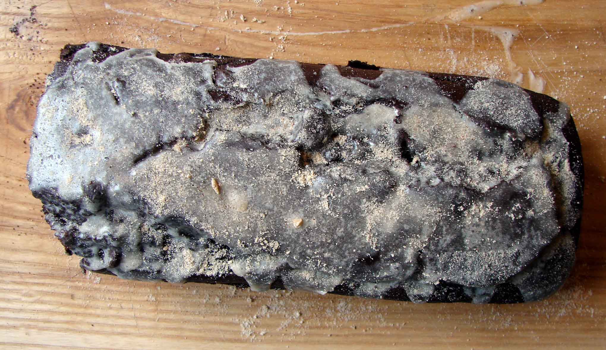 Speaking of sweet!! This bread is loosely modeled on yet another recipe from Mrs. Beeton’s tome of everyday cookery. Her recipe was for a malt bread. I love malt powder, and for some reason it reminded me of hot chocolate mix I used to love as a child, which had cocoa powder and malt powder and cinnamon. A lovely combination! The bread is not too sweet, (which is why I can get away with calling it bread and not cake!) and I think this helps you to notice the taste of the cocoa, rather than just a sort of sweet chocolatey flavor. It does have chocolate chips and a sugary cream glaze (which is supposed to be like the whipped cream in your hot chocolate, of course), though, so who am I kidding? It’s a cake.
