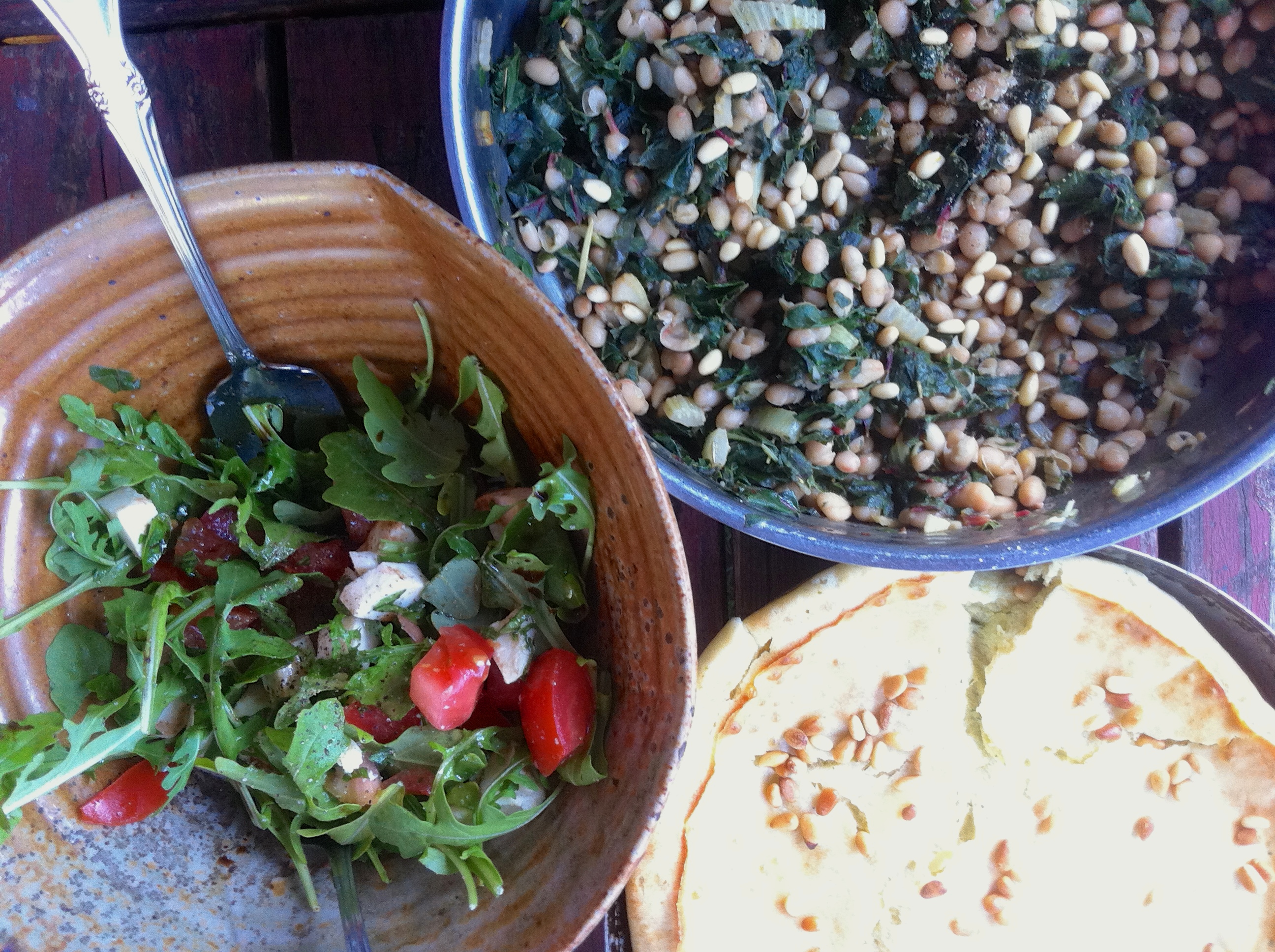 In a large skillet over medium heat, warm the olive oil. Add the garlic and rosemary (and a pinch of hot pepper flakes if you like!) Add the fennel, stir and fry until the fennel and garlic start to brown. Add the beans, stir to coat with oil and herbs. Add a splash of wine. Add the chard and a few tablespoons of broth or water, stir and cook until the chard is wilted but bright…ten minutes or so. Stir in butter, balsamic, fresh basil, and season well with salt and pepper. Scatter some pine nuts over the top.