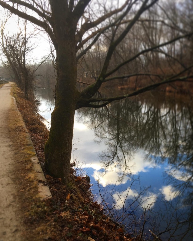 If I’m being honest, yesterday was a challenge for someone trying to be hopeful about winter. A snow day with no snow. I did feel down, I did feel Under the Weather. But this morning there was a light asserting itself against a heavy slatey sky, and that’s one of my favorite things ever. And though I felt too tired for a run on the towpath, Clio decided we should forge on, and she is my boss, and I felt such a swelling of hope and joy, just seeing the light and the colors. I felt it in my heart.