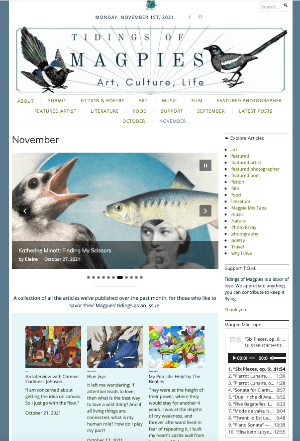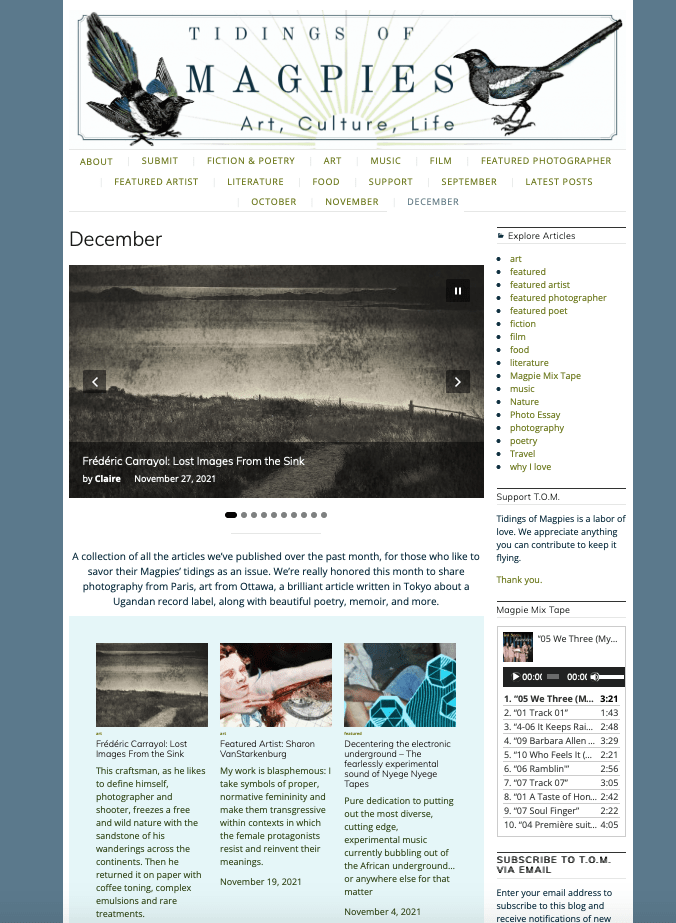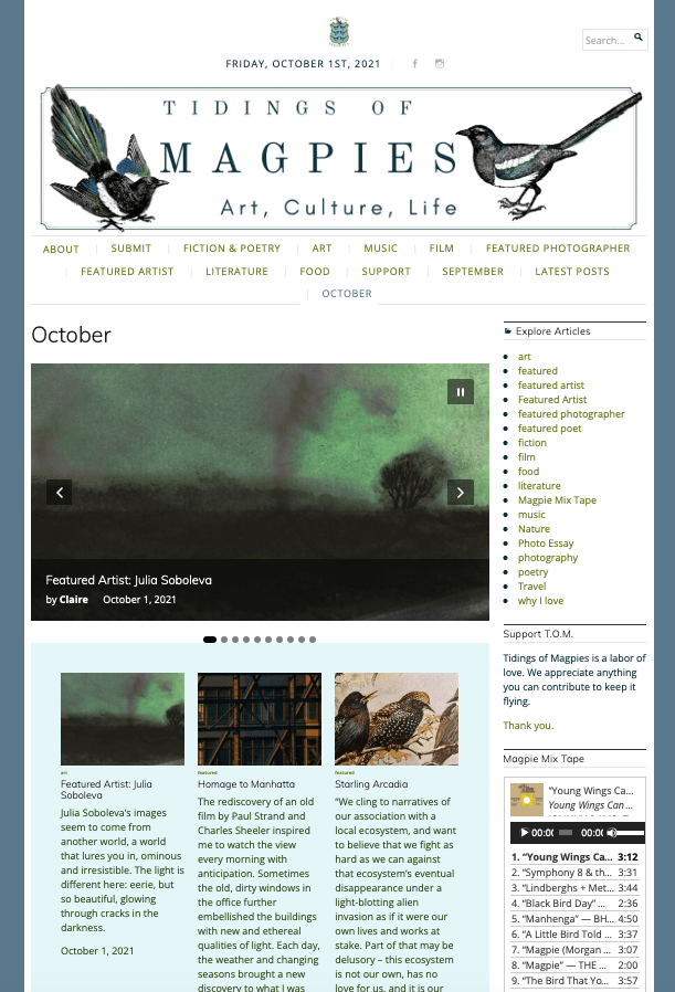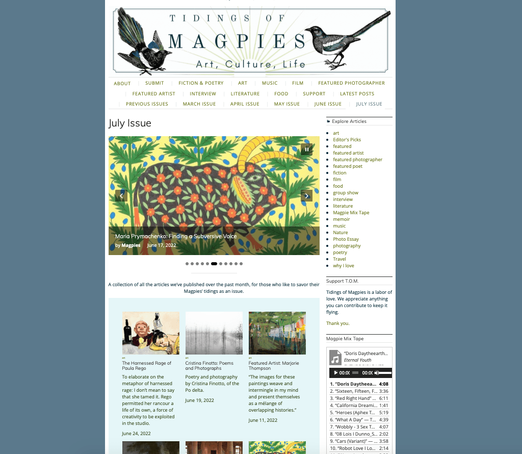Read the July Issue here. We’re really happy with the way this issue turned out! Very grateful to the artists who let us share their powerful words and images.