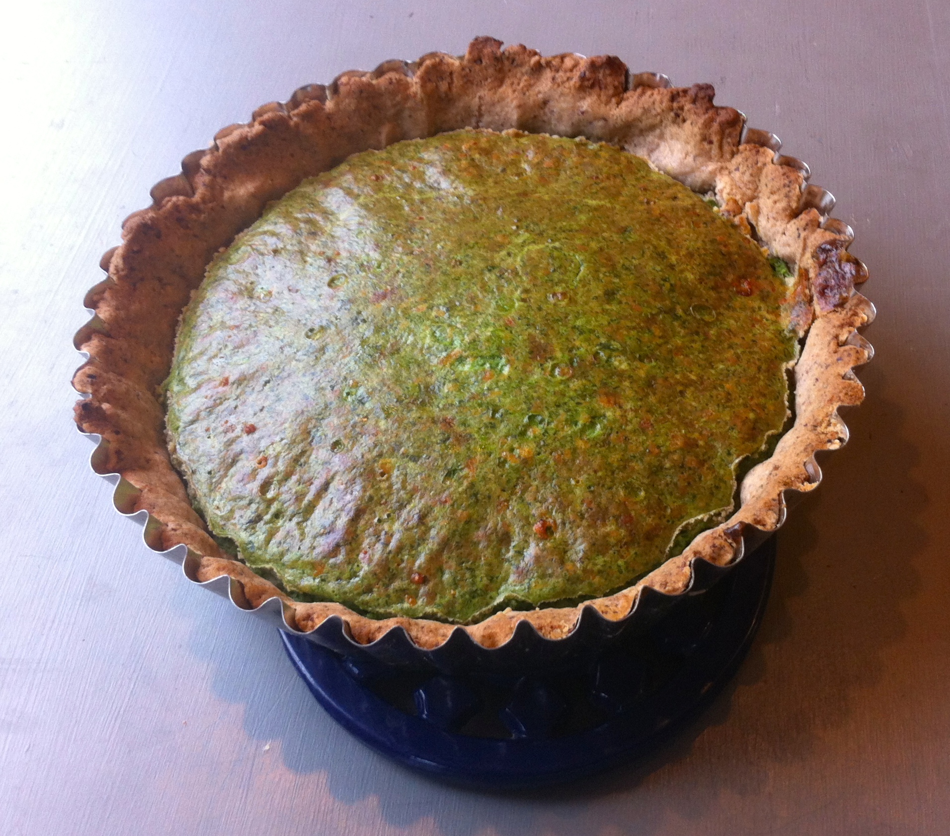 Spinach, tarragon and ricotta quiche with a pecan crust
