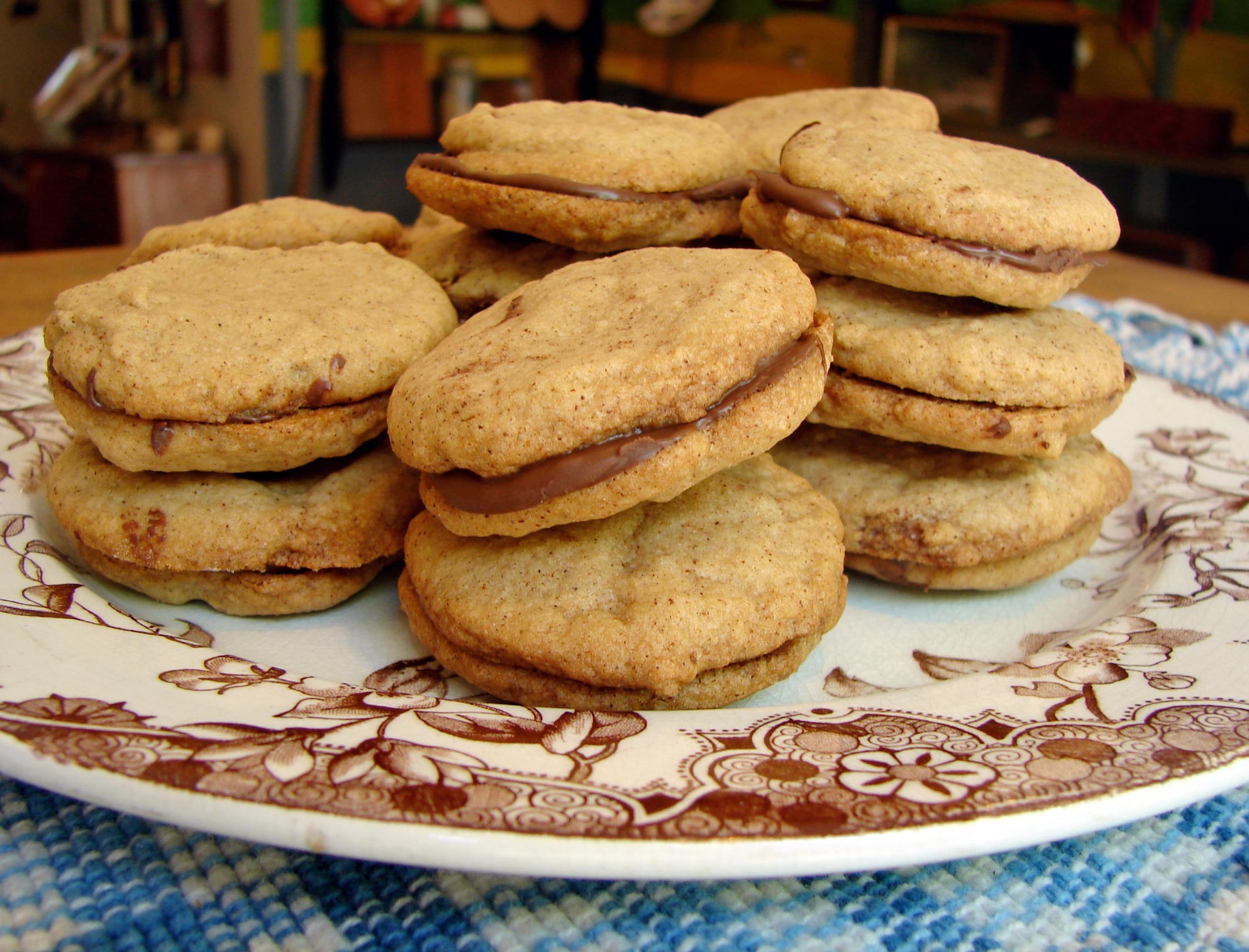 Which brings us back to malt powder. These cookies have almonds, hazelnuts, spices, chocolate chips and malt powder. They are very very crispy. The day I made them was extremely humid, and within an hour they melted. I’ve never seen anything like it! I put them in a warm oven for about 10 minutes, and they came out as crispy as can be. Both the ice cream and the cookies have chocolate chips that I processed for a minute or two, so they’re a little crumbly. Some chips stay whole, some turn to dust, and I like the contrasting textures.I keep drinkin’ malted milk, try’n to drive my blues away