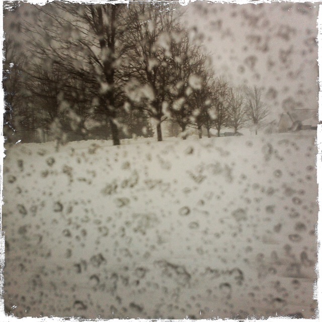 Of course the unseasonable hopeful warmth came to an end. The sky was inky, gloomy and ominous. The rain spattered against windows half-opened for the first time in months. The wind threatened to tear the roof off, and the storm on the radar looked like a solid flaming bar of hellfire headed our way. And now the bushes and trees, with their hopeful budding leaves, look vulnerable and almost foolish, stretching out of the snow.