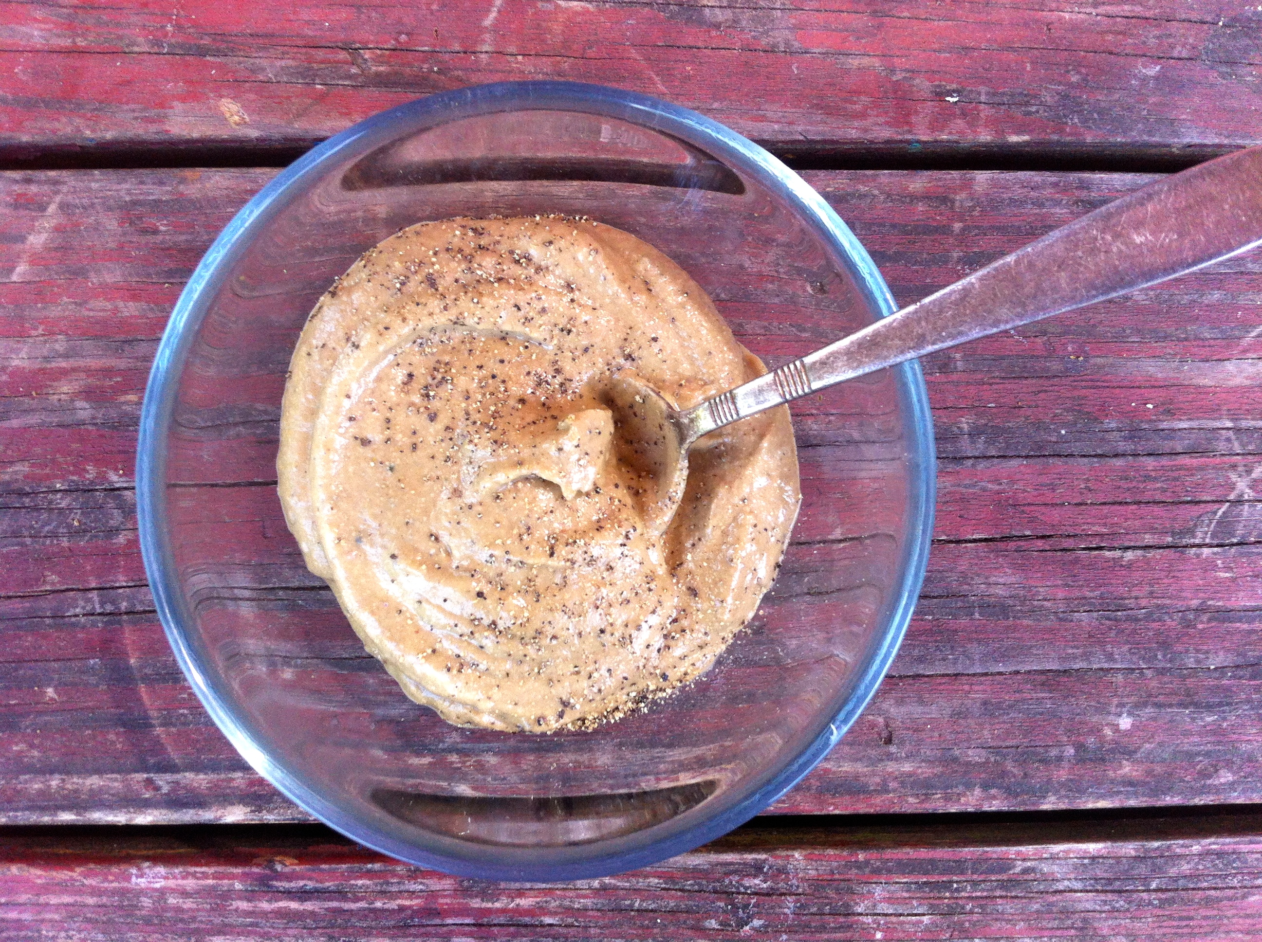 On Monday the boys cooked every single meal over a campfire in the back yard. They made veggie sausages and toast for breakfast, peanut butter and jelly for lunch, and potatoes and mushrooms for dinner. My friend Neil had just told me about a Romanian eggplant dip made with charred eggplant, so I decided to make a version of that. I wrapped an eggplant in foil and cooked it right in the fire for about an hour, till it was melting inside and charred outside. I combined it with pistachios, pine nuts, some herbs, some roasted garlic, and I made thick smooth sauce. We ate it with olive bread and fresh tomatoes, but it would be good with pita and salad, or as a dip for roasted vegetables or chips.Here’s Autumn Sounds by Jackie Mittoo