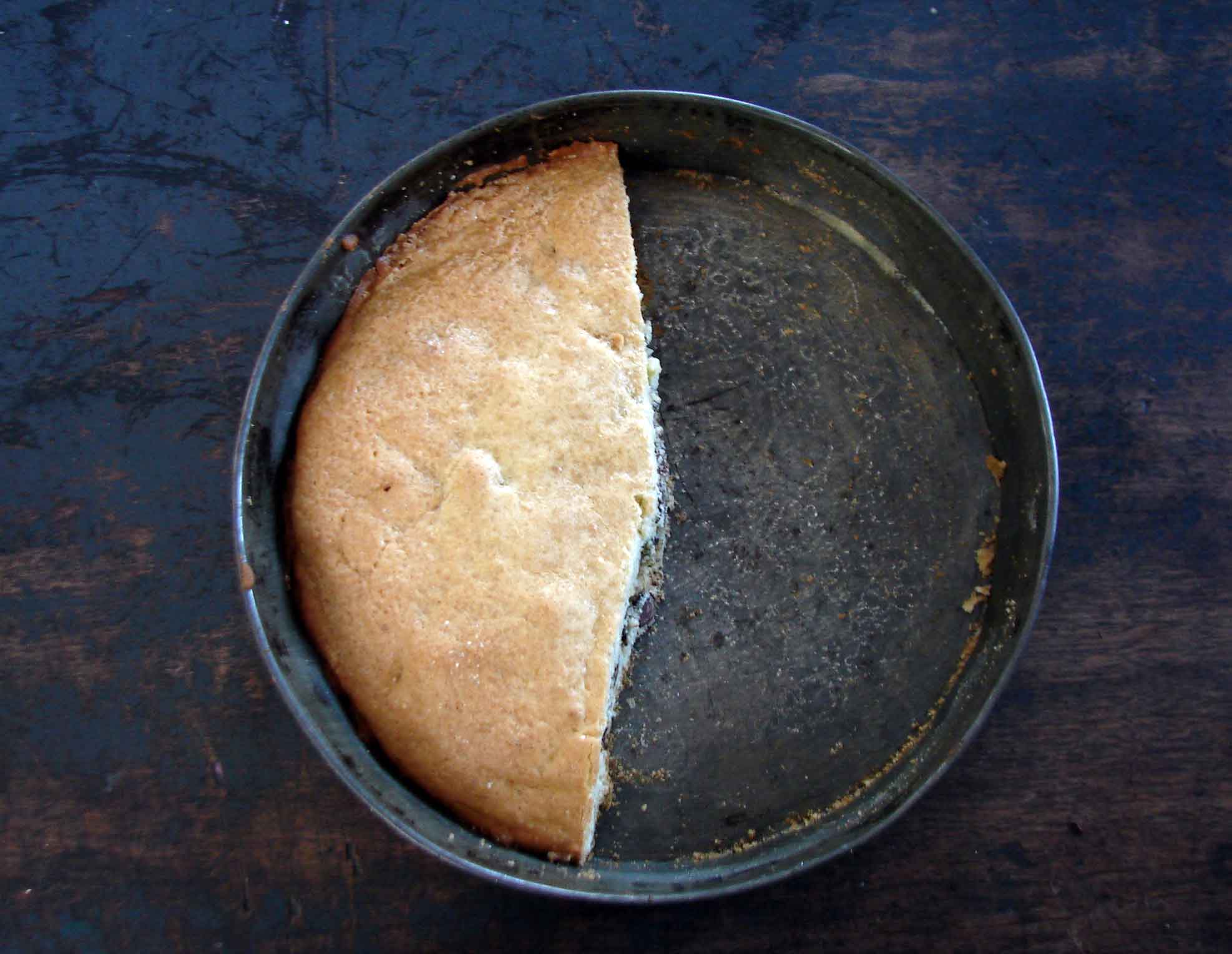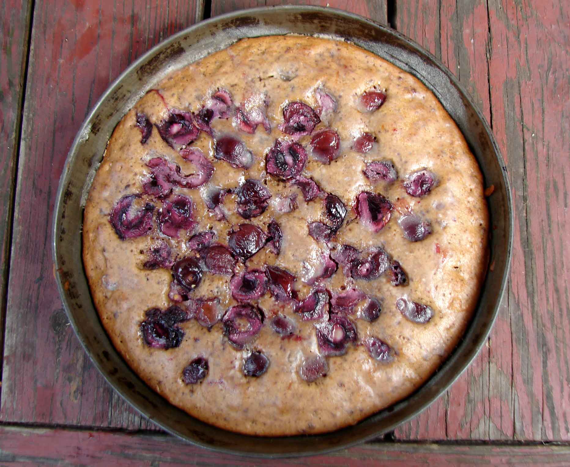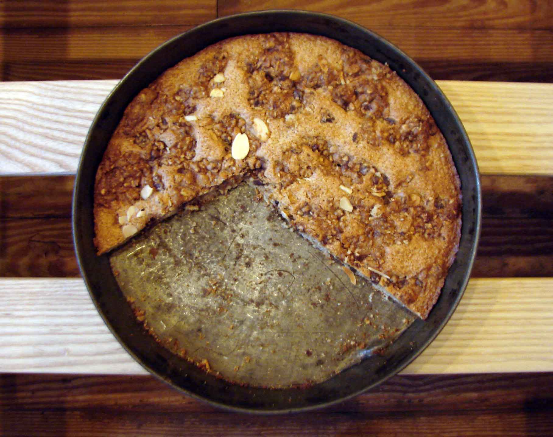 Snowy weather is always good baking weather, so we’ve been making lots of cookies and cakes and bread. One day I ran out of flour, so I made this cake. It’s very tasty! Soft and flavorful, but with an almost crispy layer on the top. The flavors–cinnamon, chocolate, coffee, almond–they’re perfect together! This wasn’t at all hard to make, and it was even easier to eat.