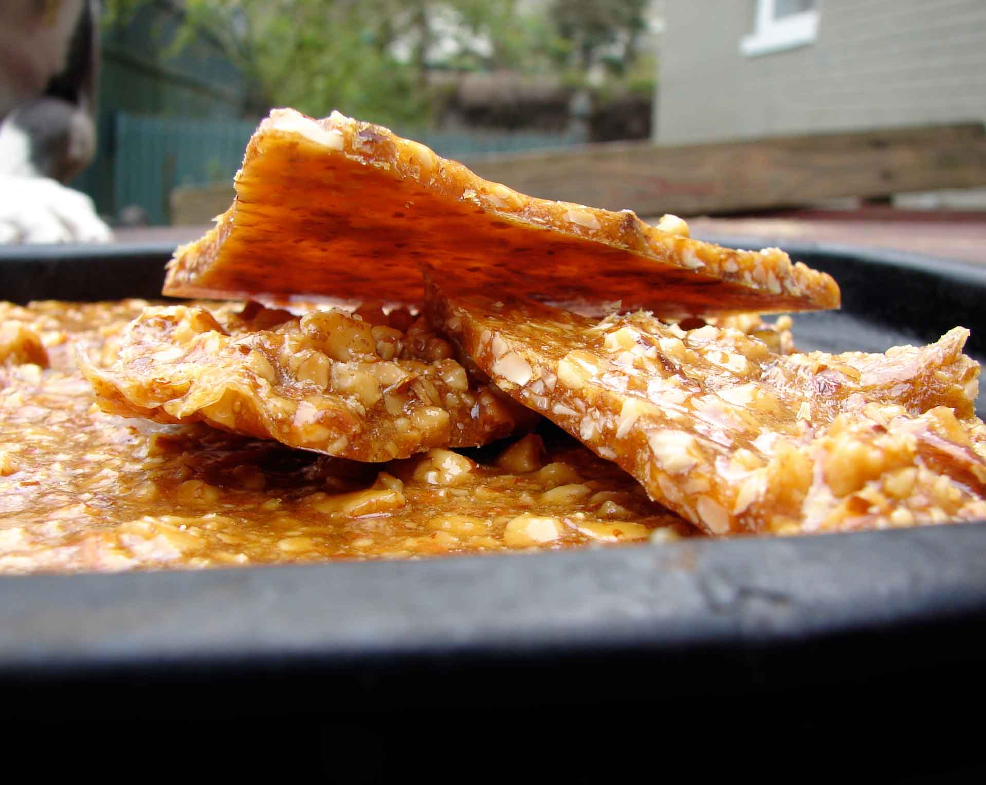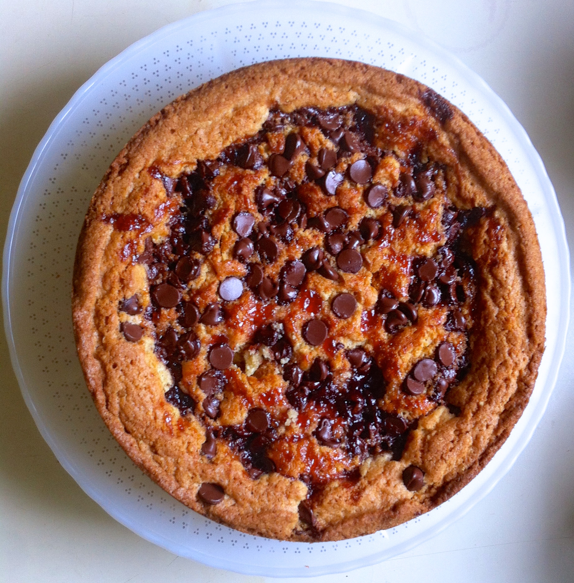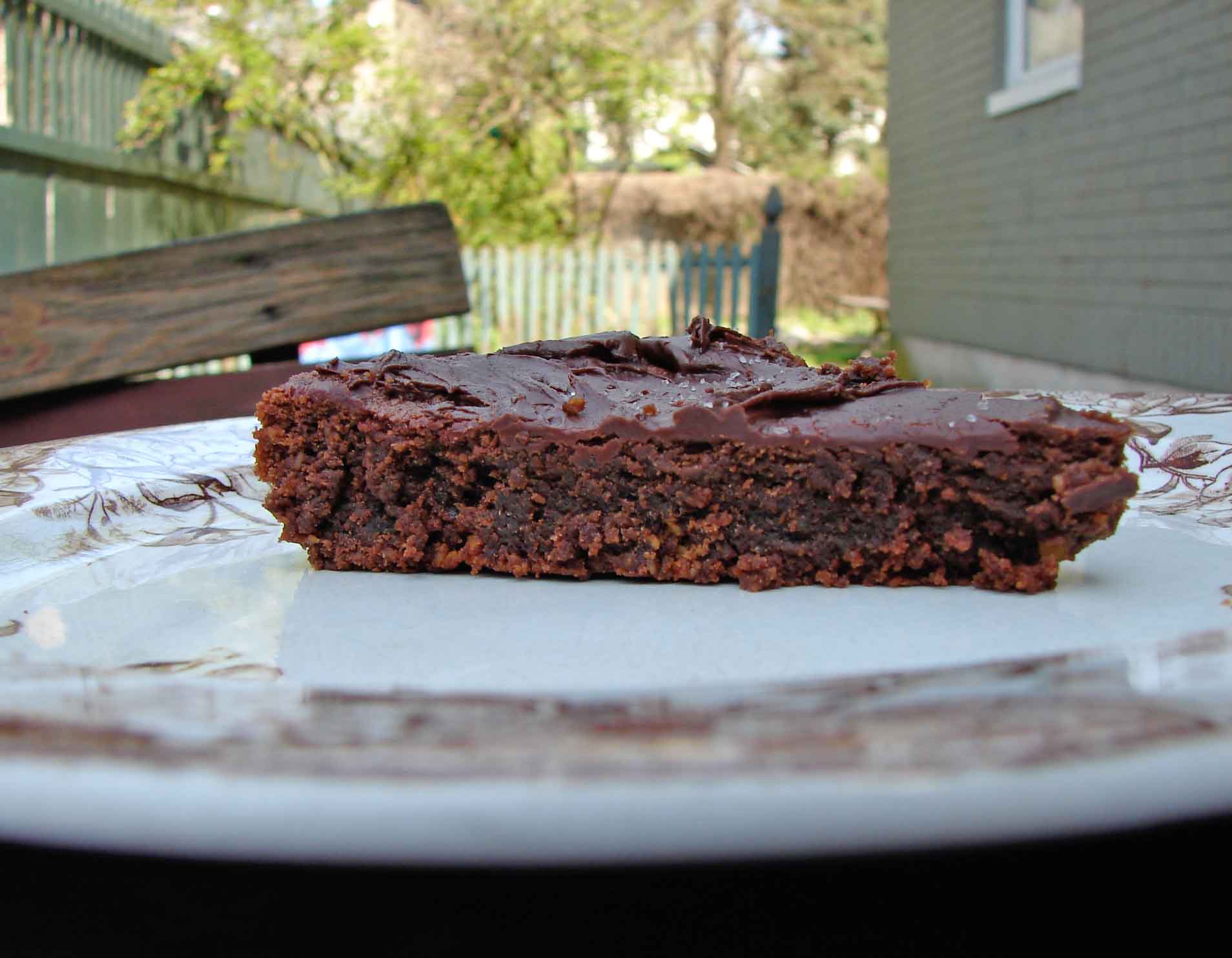 Snowy weather is always good baking weather, so we’ve been making lots of cookies and cakes and bread. One day I ran out of flour, so I made this cake. It’s very tasty! Soft and flavorful, but with an almost crispy layer on the top. The flavors–cinnamon, chocolate, coffee, almond–they’re perfect together! This wasn’t at all hard to make, and it was even easier to eat.