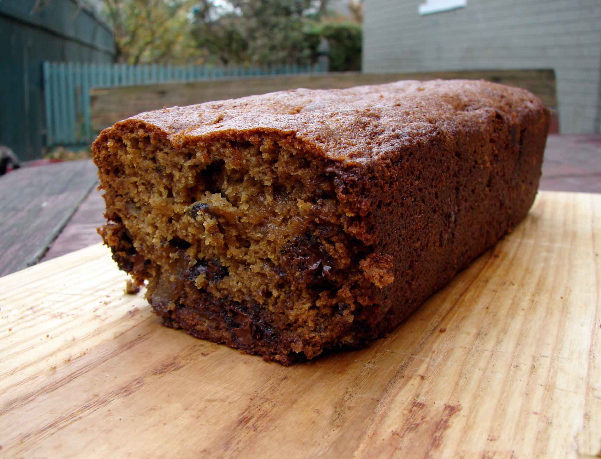 And here’s a cake that uses up leftover cranberry sauce and bananas that are past their prime. It’s rich and moist and tasty. I added chocolate chips, cause I love them, but you could easily leave them out.