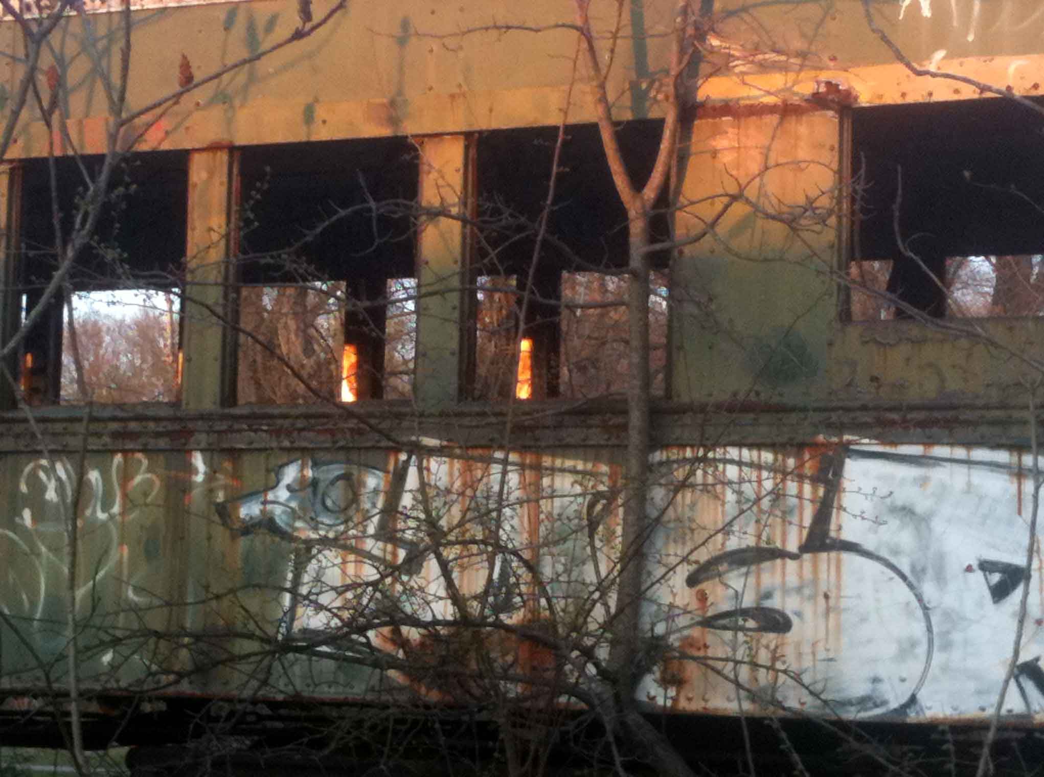 Behind the school there’s a hill where the children play. Some will build forts, some will make a bridge over the slight ravine that leads to the hill or a dam for the creek that runs down the hill after a great rain, some will be content just to climb, and see how high they get, and look down on the world below them. In the winter the hill is bare and beautiful, with a ruddy light between the silvery sycamore trunks; in the summer it’s lush and green, and it’s harder to find your children behind the vines and brambles. When Malcolm was younger, he used to disappear over the top of the hill, and it made me so anxious. I like to joke that I can get up the hill, but I can’t get back down. Of course I could if I really needed to, but I’m not as nimble as these young mountain goats, with their fearlessness and their low centers of gravity. So I’d stand at the bottom and fret, and yell at poor Isaac if he ventured up the hill at all. It’s odd to think back to that time, now, because these days I don’t think twice about letting Malcolm go over the top of the hill. I still don’t know what it looks like up there, and for some reason that idea appeals to me. I like to think about Malcolm venturing to places I don’t go, and seeing what I can’t see. I like to think about his world growing and glowing in that way, rich and colorful in my imagination and his memory. When we go for walks, Malcolm’s always climbing and leaping and scampering to places I could but generally won’t go. On top of giant piles of rock or down a slippery river bank. It used to me taking pictures of him and these feats of derring-do. Lately he’s taken my phone with him, so that he can take a picture of the view from his angle, of the world as he sees it. The other day we walked along the abandoned train tracks to the south of town, and came to a train car bathed in ridiculously beautiful golden evening light. I took pictures from the outside, but Malcolm, of course, climbed in.