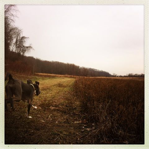 On New Year’s day we lost and found Clio. It all started because we all had a thick layer of wintery cobwebs clouding our vision and our brains, and they needed clearing, so we went to a big field by the towpath for a scamper. The boys and the dog raced ahead, buoyant and bright-eyed. The field was golden, the sky was pale and glowing, the bare trees dark and stark and beautiful. I thought, “We needed this!” and imagined how nice it would be to go home later and be warm and cozy.