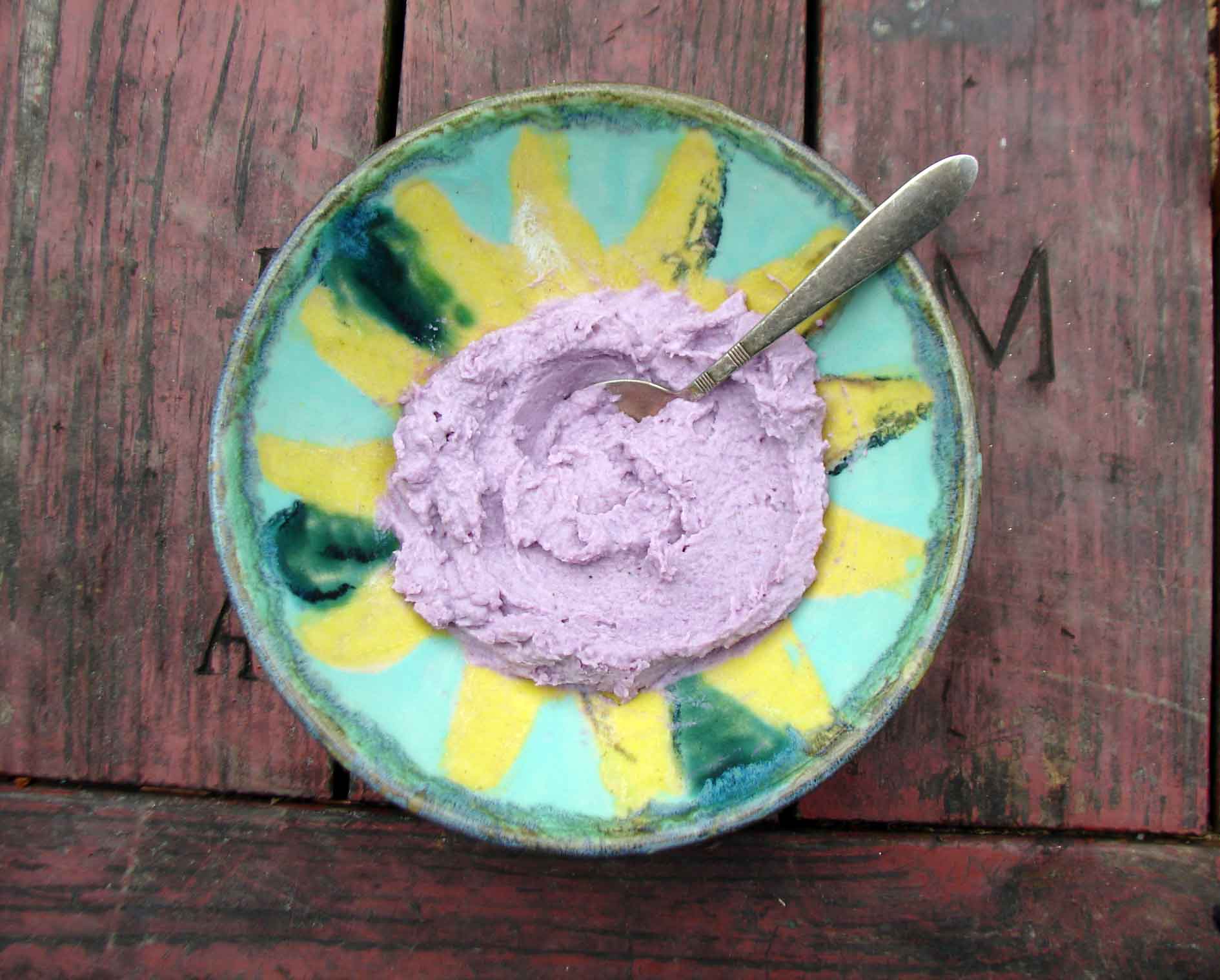 It’s a purple purée! Isaac was mystified by this dish, but he ate it anyway. It’s a combination of a purple sweet potato, a regular potato and half a head of cauliflower, all boiled till tender and then mashed together till smooth. It was really delicious. I seasoned it very simply with butter, salt and lots of pepper, but you could jazz it up with various herbs and spices, or even with cheese.