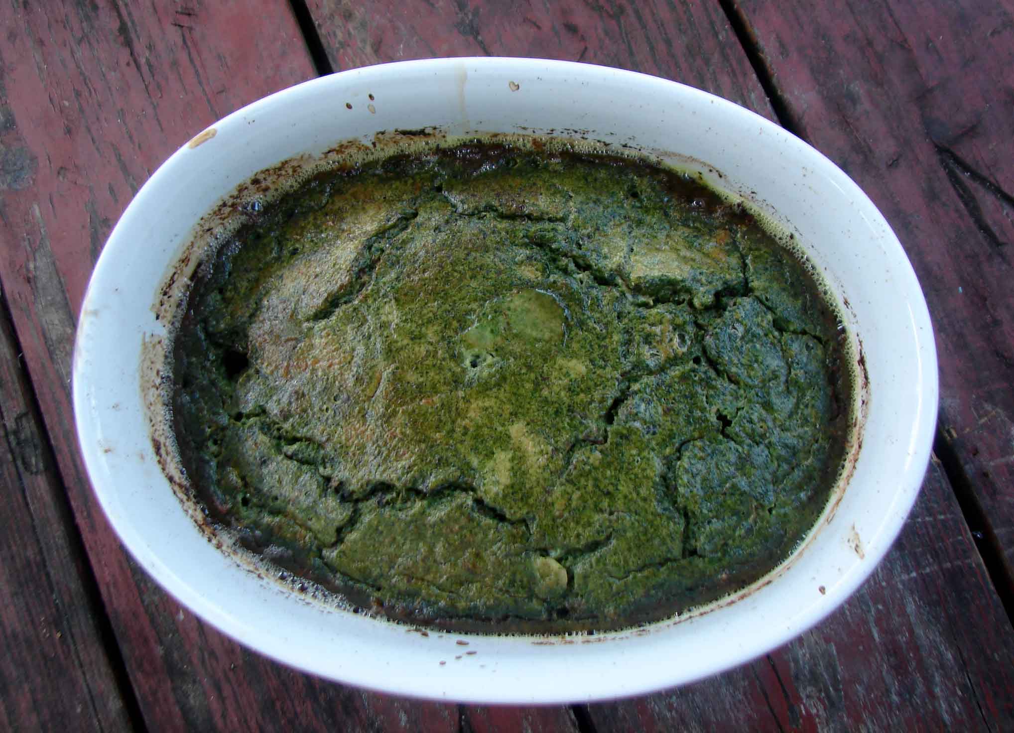 This is sort of like a lazy person’s souffle. It’s light and tender and flavorful, but super-easy to put together. You sauté some greens (I used chard and spinach) with garlic, rosemary and olive oil till they’re bright and tender, and then you process them with eggs, milk, smoked gouda and olives. Bake them till puffed and golden, and that’s it! Pretty and tasty. We had this the night we had the eggplant croquettes, and I found that the maple-dijon sauce was nice drizzled on this, too, so I’d recommend trying it that way.