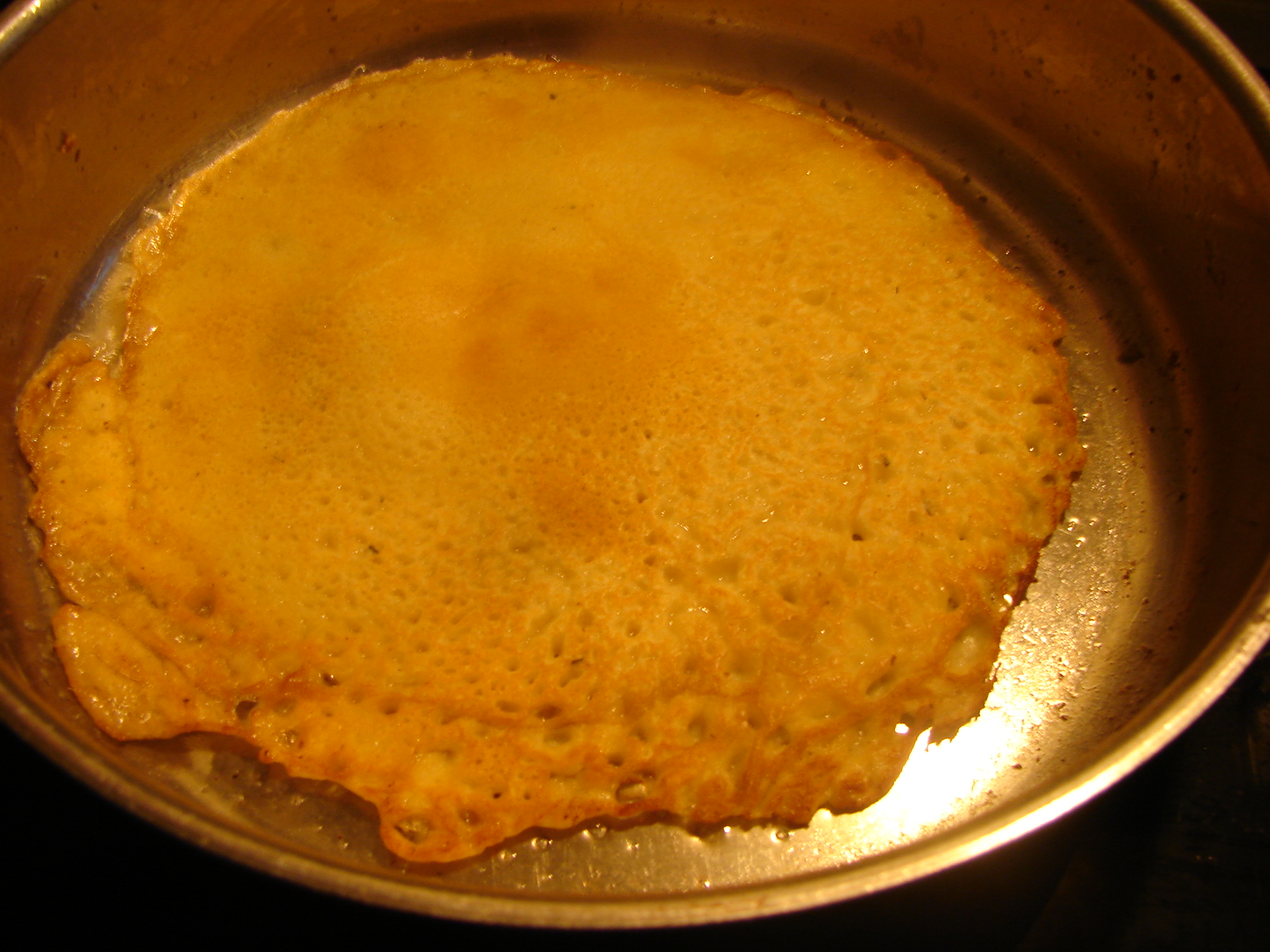 What? Another flatbread recipe? That’s right! This time of year my favorite way to eat is lots of little dishes that you eat with your hands, so I’m constantly concocting some sort of flatbread to use as a utensil and a sopper-upper. This is a sort of version of socca, the french chickpea flour flatbread. I love socca, but I find it very difficult to make, so in an attempt to limit the amount of cursing I do in front of the boys, I like to develop less frustrating methods. I’ve added eggs, and that helped. But in this case, I added yeast and some regular flour. It’s still vegan, but it’s not gluten free any more. It was simple to work with, though! It all came together like a charm–easy to roll out and bake. And tasty, too!