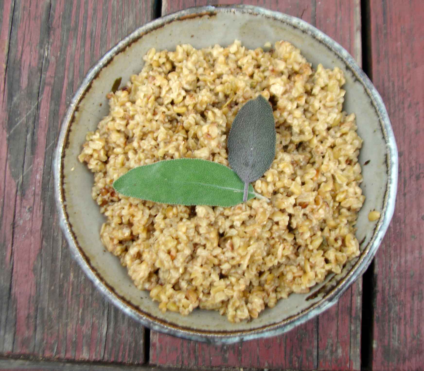 Freekeh! I saw it at the grocery store in the bulk food bins. I’d never seen it before and it looked interesting, so I bought some! I did some research, and it seems to be the new, next super grain. I’m cutting edge! It’s wheat, but not as you know it. Well, it’s similar to bulgur, but it’s…well, I’ll let wikipedia tell you, “The wheat is harvested while the grains are yellow and the seeds are still soft; it is then piled and sun-dried. The piles are then carefully set on fire so only the straw and chaff burn and not the seeds. It is the high moisture content of the seeds that prevents them from burning. The now roasted wheat undergoes further thrashing and sun-drying to make the flavor, texture, and color uniform. It is this thrashing or rubbing process of the grains that gives this food its name, farīk or “rubbed.” The seeds are now cracked into smaller pieces so they look like a green bulgur.” I cooked it like I cook bulgur, toasted it in butter with some herbs, then simmered it till it was fluffy. I made a sort of stew of chard, sweet potatoes, herbs, and tomatoes from the farm, threw in some raisins, chickpeas, artichoke hearts, smoked paprika and nutmeg, and that’s what we at with the freekeh. The next day I mashed up the leftover stew, stirred in the leftover freekeh, some pecans, some bread crumbs, and an egg, and made croquettes.