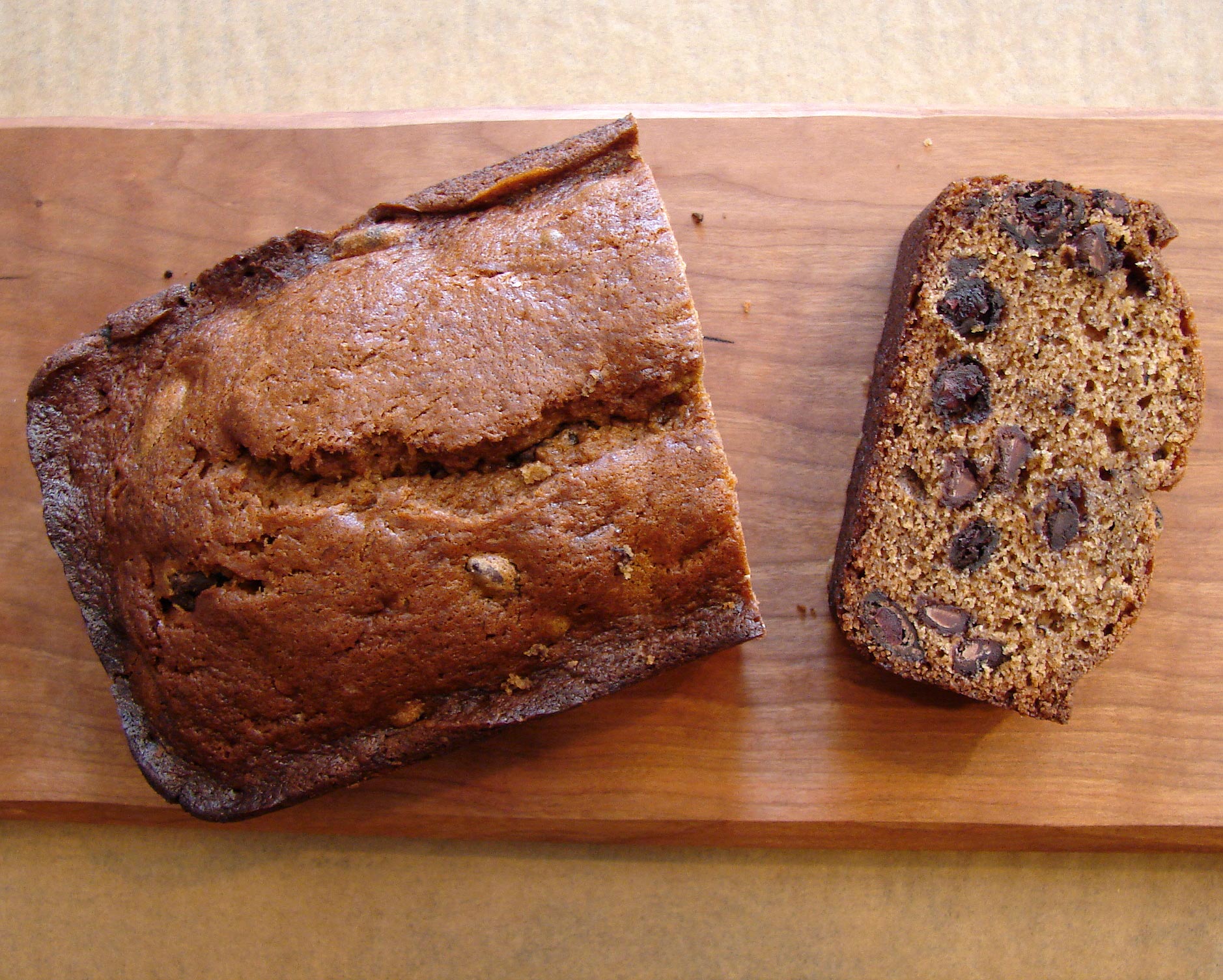 To show you how easy it is, I’ve made two at once! A pumpkin chocolate chip cake, and a coconut-almond cake with cherry filling.