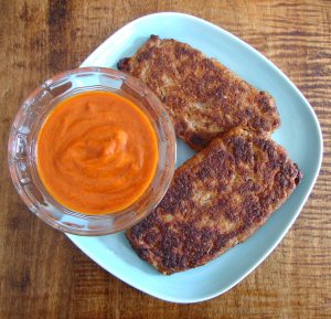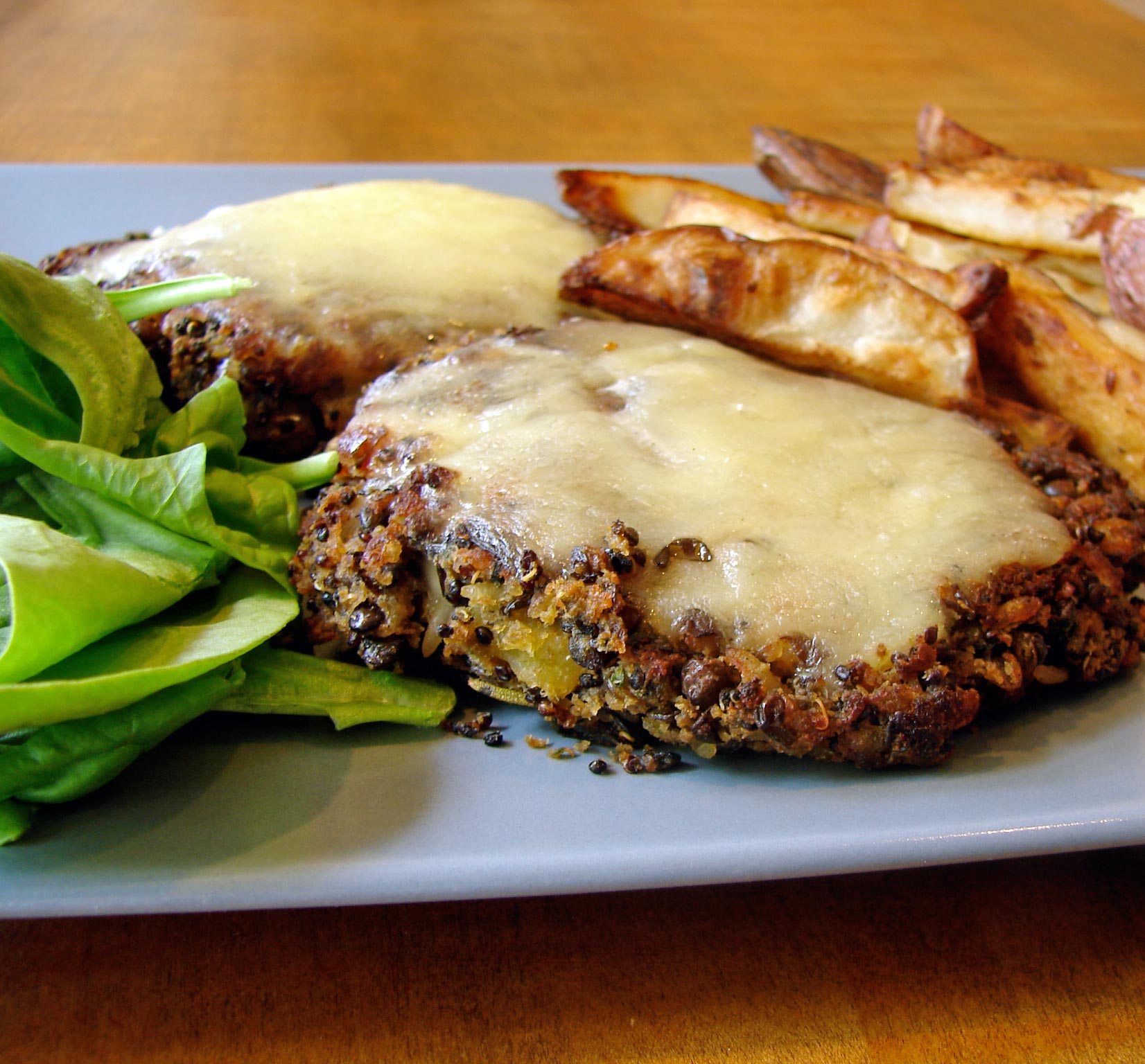 We had some quinoa mixture left over, and some extra beluga lentils, so I decided to make them into burgers. I added a little smoked paprika and tamari, for that smoky, meaty edge. I added an egg and some bread crumbs, for substance, and I fried them in a little olive oil. Delicious! They’re a little delicate, but very tasty. I wanted to make rolls for my burgers, so I made some out of semolina. I wanted to keep them simple, but I kept thinking how nice the