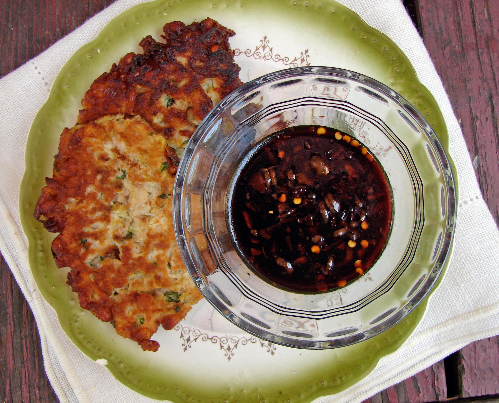 chinese dumplings we made were, with a little extra sugar, and a touch of vinegar, so I added that. The rolls were tasty, but quite dense. Which was a funny combination with the delicate burgers, but I liked it, although I concede that nice soft store-bought hamburger buns might make more sense in this instance. I heaped some lettuce and fresh spinach and fresh sliced tomato on, and I ate my whole burger! The boys ate them with barbecue sauce, and we made some oven roasted fries to go with them.