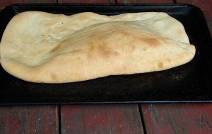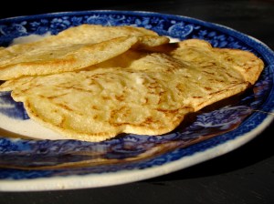 I apologize for getting nearly political here. I know it’s not the place. But I feel quite upset about this, so I’ve got to talk about it! You know what’s comforting? Flatbread. Making it and eating it. I made this flatbread with some cornmeal, some thyme, and some mozzarella. I thought it was delicious. A nice crispy/chewy texture. They’re not cheesy, exactly, but they have a nice flavor of cheese, and it helps to make them less dry. The boys loved it, too. We ate it with grilled vegetables, sliced tomatoes, spicy fried potatoes, and a big big salad. It’s not hard to make, but it is one of those pleasant do a little bit all day long types of dish. It was nice fresh with dinner, and nice the next day toasted with scrambled eggs.