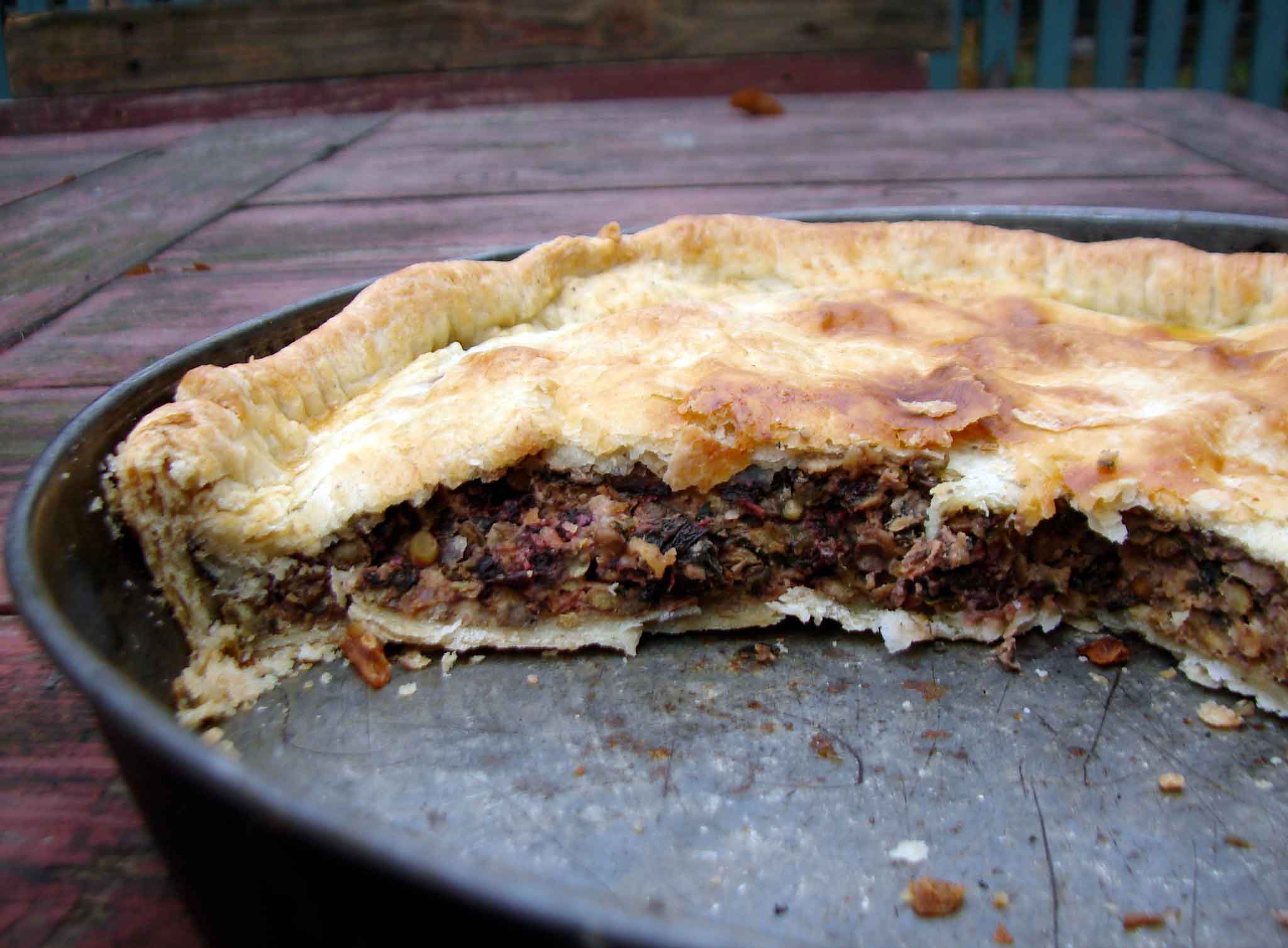 In keeping with this august benchmark in Ordinary history, I’ll tell you about this very Ordinaryish tart. I love lentils! Especially French lentils! And I love tarts! And I love all of the abundant produce of summer. The pesto I made from basil from our yard and from the CSA we belong to. The tomatoes are from our yard (and they’re wonderful!) Everything was nice together, I think. Fresh, but earthy and satisfying. The crust is yeasted and has a little chickpea flour in for flavor, the pesto is made with pistachios, almonds and sharp cheddar. The lentils are flavored with a little cinnamon, cardamom, coriander and smoked paprika. Lovely spices for lentils.