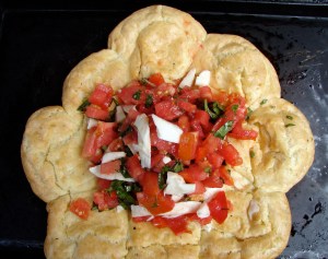 Who is making lots of tarts lately? Who is? ME! I am! I did a ridiculously splurgy grocery shop before my birthday and got brie and pistachios and smoked mozzarella and pine nuts. Phew. So I combined them all in a tart. The crust has smoked paprika in it. The custard has pistachios and goat cheese and bronze fennel leaves. You could use regular fennel leaves of even tarragon, if you’d like to have that lovely anise-lemon flavor. The whole thing is topped with bits of brie, slices of fresh mozzarella, tomatoes, casetlvetrano olives, pine nuts, fresh basil, and these beautiful little spicy shoots that make every picture prettier.Here’s Please Please Please by James Brown.
