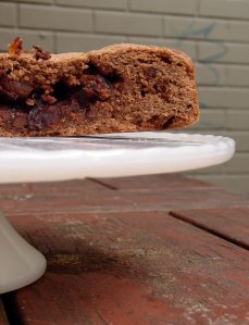 You know what I’ve been making a lot this summer? Flat wide cakes with fillings inside. Almost like a gateau basque. This one had blueberries and chocolate chips. (They almost always have chocolate) I’ve made some with ground almonds or almonds and pistachios, and I’ve filled them with jam or other kinds of fruit. Sometimes they’re soft, sometimes they’re crispy like big cookies. This one was quite soft inside, and a little crispy on top. It was very juicy, you can’t turn it out of the pan or anything, because it will fall apart. David said it’s like blueberry fudge. I’ll tell you about the other cakes another time.