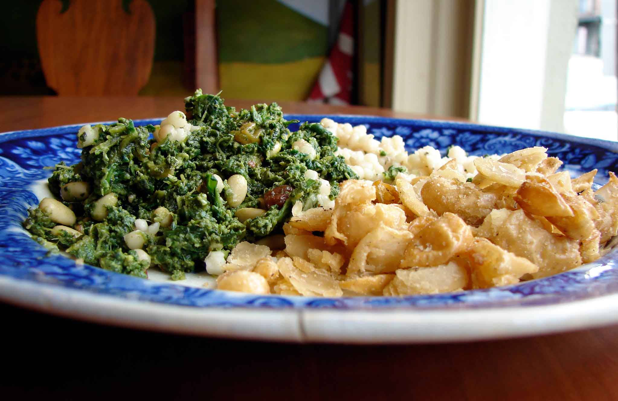 roasted butterbeans and greens with raisins and pine nuts