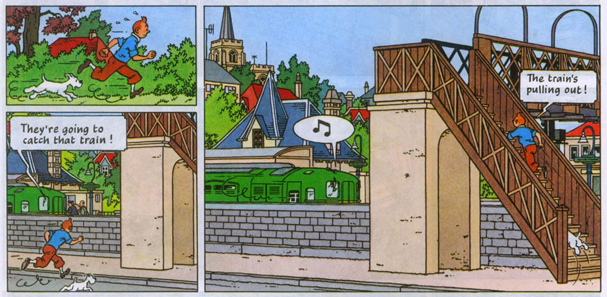 When I was in high school, I used to come home from school, heat up some frozen french fries and read Tintin. The bright, beautifully drawn world was such a perfect escape from the confusion of reality. I loved those books, from when I was little, with a sort of attachment I don’t feel for inanimate objects any more. I loved the perfect ink-lines – they’re so pleasingly precise – exactly where they should be. I love the colors – the various blues that Hergé uses resonate like few other colors in my memory. I loved the way Tintin dresses. I’m ashamed to think how much time I’ve spent trying to decide if I prefer the short-sleeved yellow shirt and black sock combination, or the one with blue sweater and white socks. I love Snowy – so smart and funny – the perfect comic foil to Tintin’s earnestness. I like Tintin himself, and his little pale apartment. He’s a boy, but he has his own place, his own job (he’s a journalist, but he never writes anything, does he?) He’s so calm, and kind, and curious, and fearless, and surprisingly strong! He’s such a rational, average sort of person in many ways, but he’s surrounded by a universe of eccentric friends. The disappointingly racist and xenophobic books weren’t available when I was younger (or maybe my parents wouldn’t let us have them) so that didn’t cloud the lovely clarity of the pictures and stories. I love the light, deft style and subtle humor, so thoroughly stomped on by Spielburg’s gruesomely heavy-handed, Hollywood platitude-laden mess. He shouldn’t have done it!