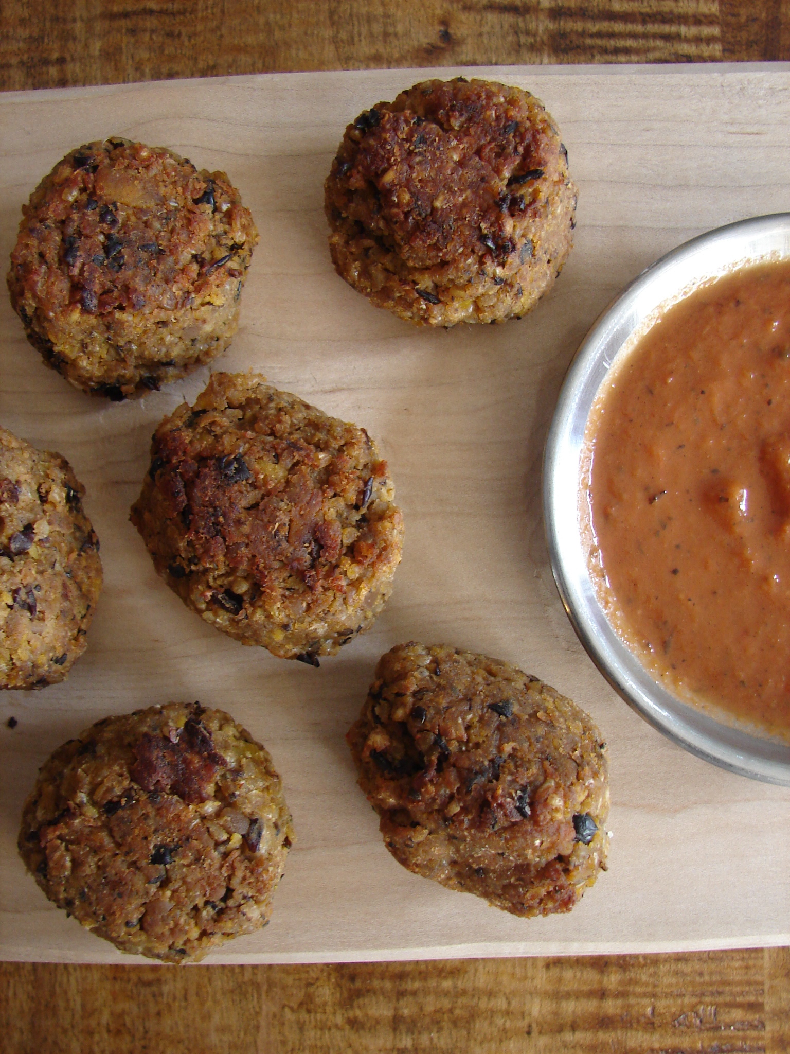 In the meantime, we’re still eating winter squash, here at The Ordinary. And I’m still experimenting with the joys of grating and roasting it. It’s so nice and soft and crispy and sweet and savory all at the same time! In this instance, I mixed it with some leftover farro and some walnuts and made it into little balls. I fried them up in olive oil, so they’re crispy outside and soft in. The flavors are sage, smoked paprika and nutmeg – I suppose they’re flavors I associate with a sausage-y taste, so these could pass for vegetarian meatballs, or if you made them long and thin, they could be vegetarian sausage. We ate them with tender whole wheat flatbreads, which I’ll tell you about soon, arugula, which went so nicely with the nuttiness of the walnuts, and a creamy (cream-free) walnut rosemary tarator sauce. The sauce turned out very good, and would be nice with any kind of roasted vegetable – beets, potatoes, parsnips, any of those old dried tubers. In the summer, it would be nice with grilled zucchini and asparagus as well!! If you don’t have leftover farro, I’ve told you how to make it, and you can use the extra to toss on salads, or as a base for sauces and stews.