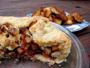 And here’s a cake that uses up leftover cranberry sauce and bananas that are past their prime. It’s rich and moist and tasty. I added chocolate chips, cause I love them, but you could easily leave them out.