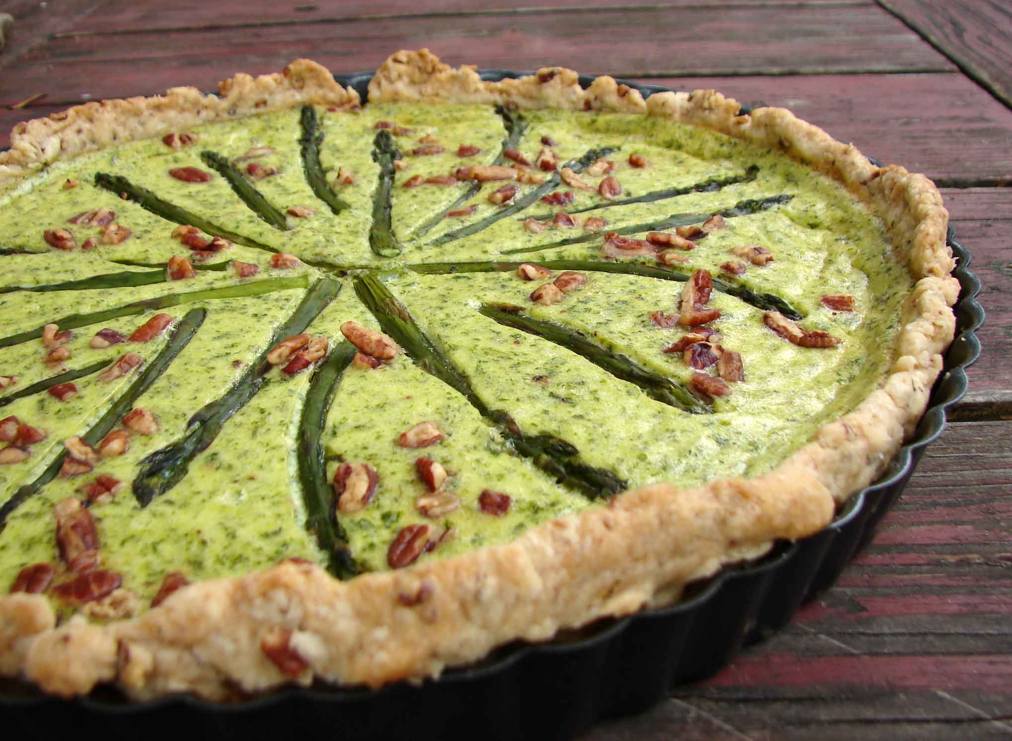 solidly that it glows, and I’m sure all the moments of their daughter’s life will be caught and held, with wonder and love. Yeah. Well, this tart has a pepper pecan crust, and a mild yet flavorful filling of asparagus, spinach, a bit of thyme, and some sharp cheddar. It’s pretty easy to put together, and has a nice combination of green and nutty flavors.