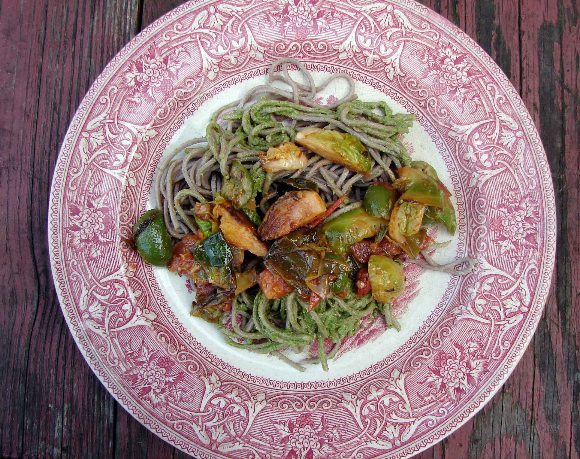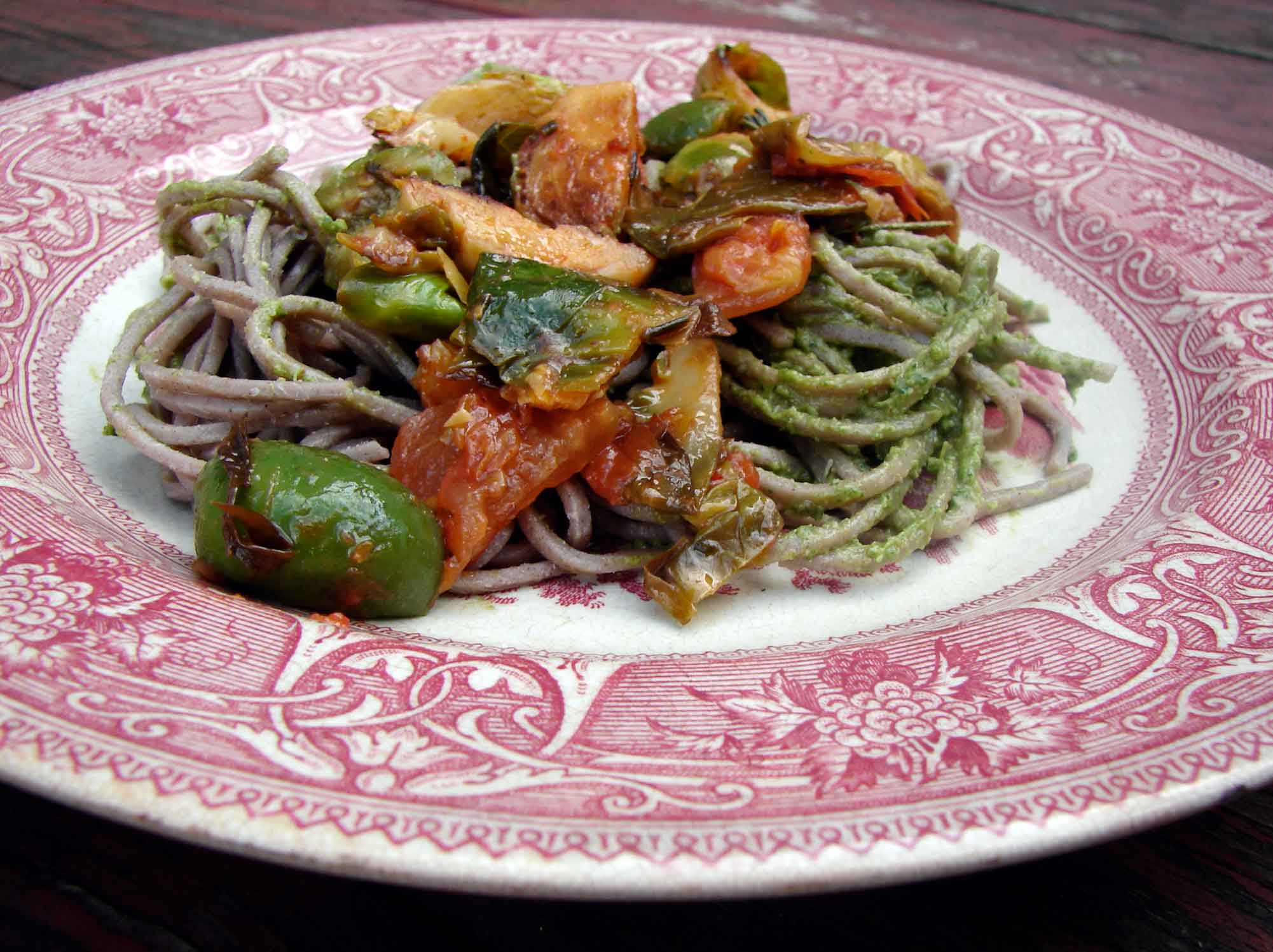 I’ve been making lots of pizzas lately! I always make a “normal” one for the boys, with marinara and mozzarella, and then I make a weird one. I’ve been experimenting with lots of almost-pesto sauces, which are almost more like savory frangipane. And this one was no exception. It had a pecan sauce, which I actually made earlier in the week to have with kofta. I added an egg and a little smoked gouda and topped it with roasted parsnips and caramelized shallots. Smoky, savory, a little sweet. Nice.