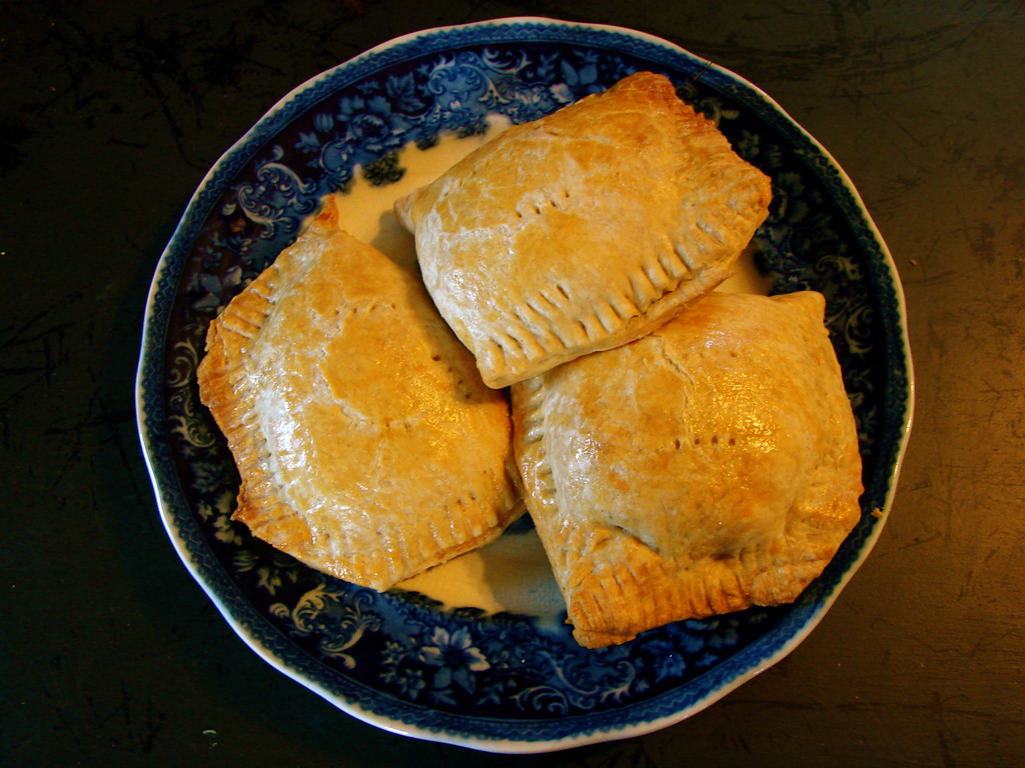 These pies have sharp cheddar, which holds everything together and adds an edgy yet melty flavor. And they’re seasoned with thyme, sage, rosemary, paprika, nutmeg and fennel. They’re nice to take to a party, because they transport well, and they’re substantial enough that they can make a meal. That’s it! I’m done talking about them! I’m going to tell you how to make them now. Except that I should mention that I took them to a party, and as I sat with them on my lap – they were warm and fragrant, and they smelled like butter and beer, and it made me think of butter beer. That’s from Harry Potter, right?