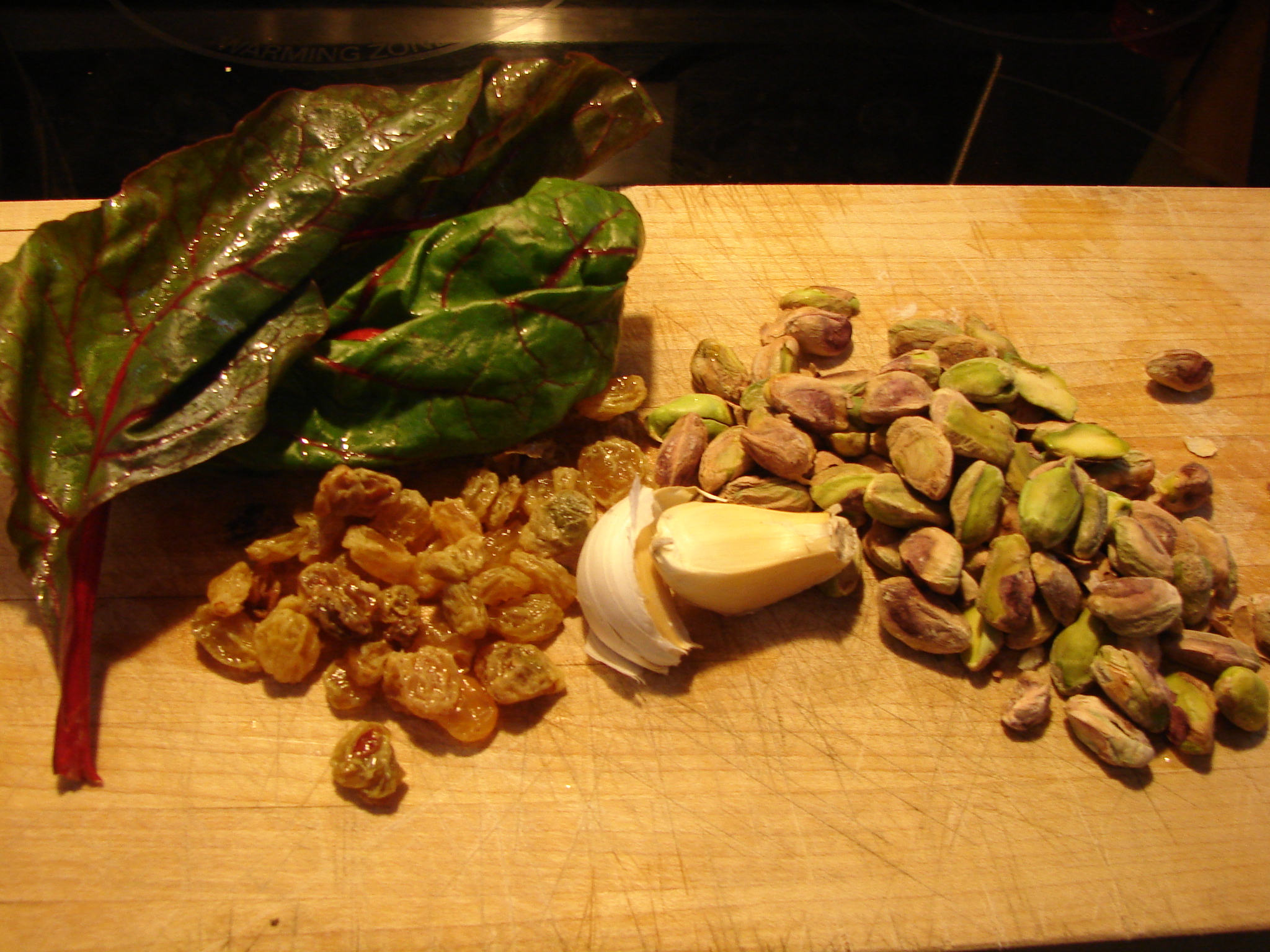 When I was in Spain quite a few years ago, I stopped at a place with only one vegetarian thing on the menu – spinach, raisins, and pine nuts. It was such a simple dish, and I had such a heaping mound of spinach on my plate, but somehow it was one of the most memorable and delicious meals I have ever eaten. The filling for this pie is loosely based on that memory. I used chard instead of spinach, because of the added depth of earthy flavor, and because it seems more substantial. And I added pistachios, quite frankly, because I had them! You could just as easily use spinach and pine nuts. The flavor would be different but equally delicious. I added lemon zest to this light yeasted crust, because I think the brightness of lemon zest contrasts nicely with the earthiness of the chard.