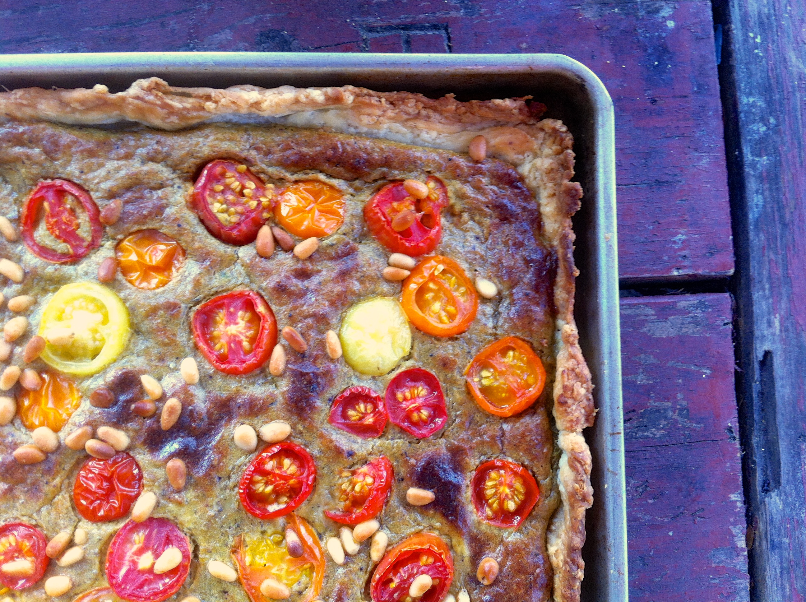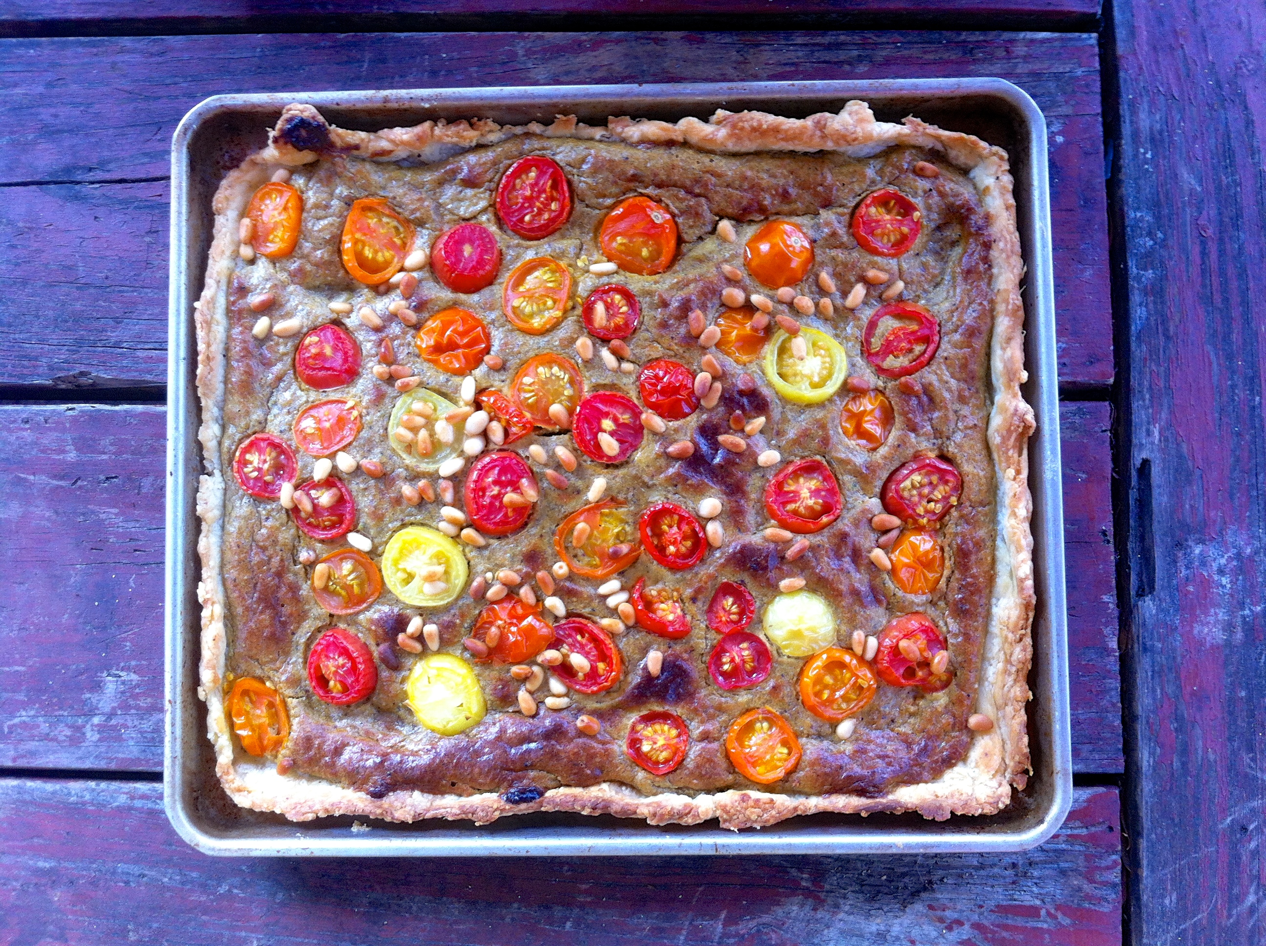 Well! With my obsession with frangipane, and making frangipane out of hazelnuts or other non-almond nuts(which makes it no longer frangipane!) OF COURSE I had to try this!! I made a simple paté sucrée crust, with a hint of cardamom. I made a pistachio frangipane (an imaginary beast!), and then I just sliced very ripe apricots, and sprinkled them with sugar because they’re quite tart! I liked the resulting tart very much indeed, but I have to admit that my boys wouldn’t try it because they don’t like apricots. And the apricots were tart. It was a tart tart. This appealed to me very much! I think it would be nice with some lightly whipped, lightly sweetened whipped cream. The tart won’t last for days in pristine form, because the fruit softens the crust. So eat up!!
