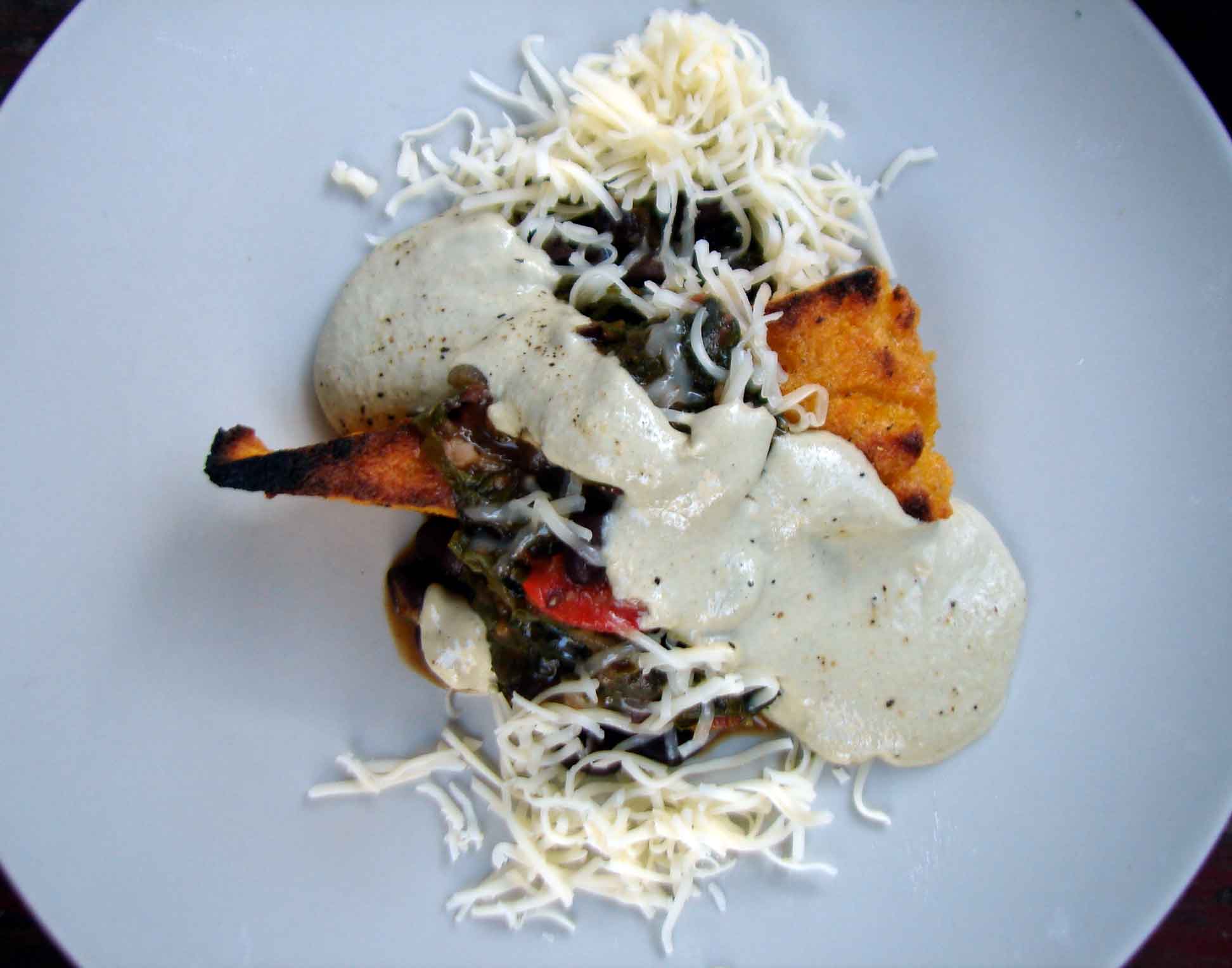 We’ve had a couple of blisteringly hot days, the kind when you don’t want to cook at all, and inspired by my new Ordinary friend Tom, I made these cool tacos. Tom makes his into quesadillas, which are vegan because he uses hummus instead of cheese to hold the quesadillas together. I think this is genius! It was too hot even to turn the stove top on, so we made them into soft tacos instead. I warmed the tortillas in the toaster and I made some rice for the boys, but other than that no heat was required to make these tacos. We’ve had them several times now. Once with black beans, peppers (hot and sweet) and avocado, once with red beans, tomatoes, fresh mozzarella, olives, and lots of herbs. You can make them vegan without cheese, or add feta or cheddar or goat or any cheese you like. I made a lemony herb hummus to go with them,as well as a smoky toasted pumpkinseed sauce. All vegan if you leave the cheese out!