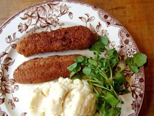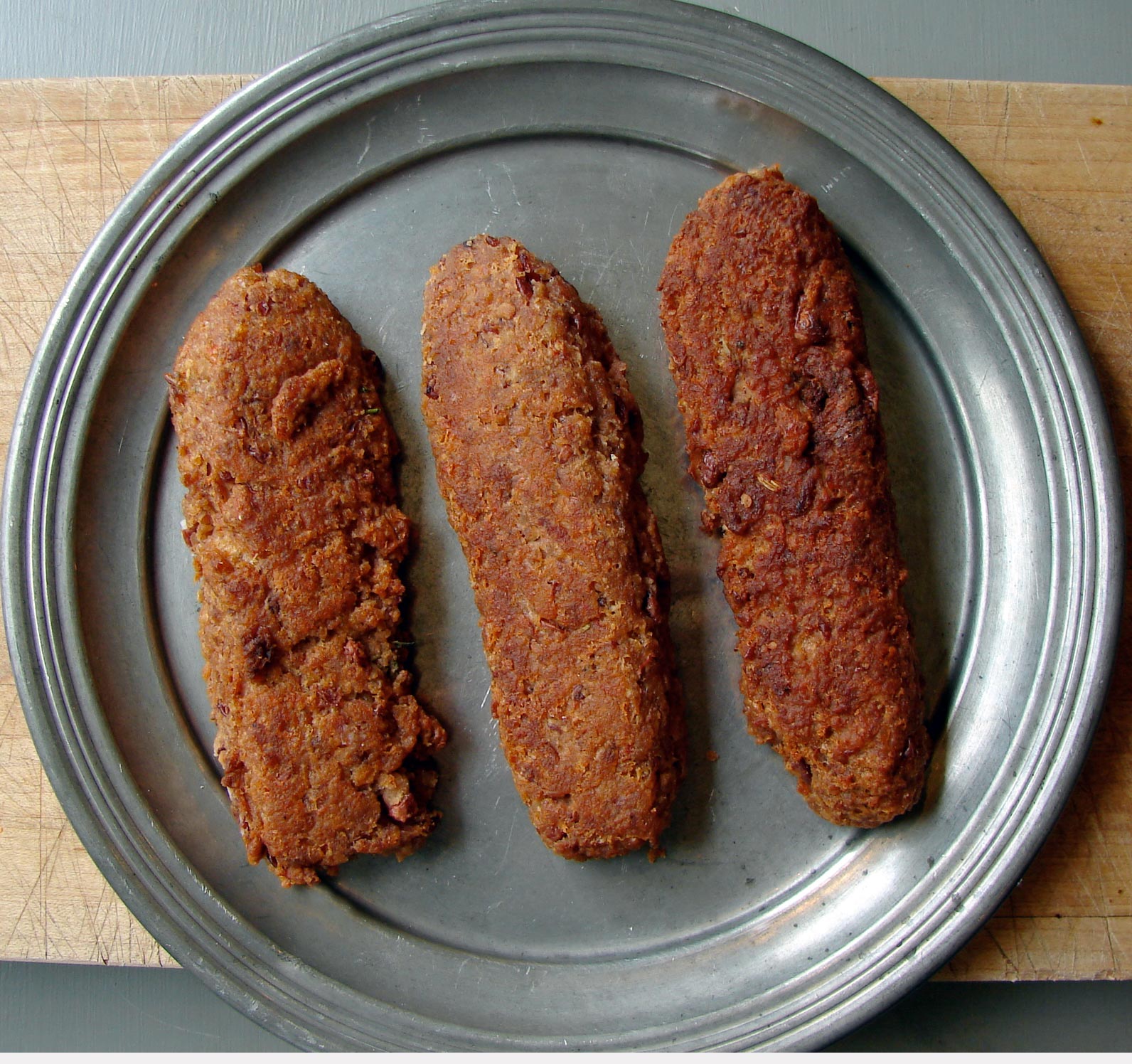Vegetarian sausage (with red beans, pecans, and roasted reds)