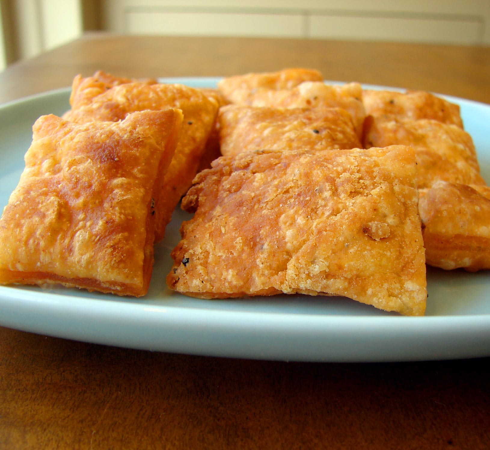 The boys were home all last week for spring break, bringing their own little whirlwind of boyish joy and drama. Do I look frazzled? We had a nice week, though. We went away for a few days, which we never do. And I got to go on lots of walks with Malcolm. He’s good to walk with because he talks and talks. You can just walk next to him and listen. He talks about how he gets all his best ideas right before bed, he wonders if I’d like yoshi from some game we don’t have, he thinks that everybody thinks that we’ll have flying cars some day, he had one lamb’s ear that we bought that died, and one he dug up that lived a long time till some kid at a party tipped it out of its pot. And he came up with the idea for these peppery crisps. He wanted them to be very spicy and very crispy. He wanted them to have lots of different kinds of pepper in them. Sweet red peppers, red pepper flakes, cayenne, black pepper, and smoked paprika. He wanted to make the red peppers themselves crispy, but I couldn’t think how we’d do that, so we made the roasted peppers into a puree, and mixed it into a sort of pastry dough. Then we rolled the dough out quite thin, cut them into diamonds, and fried them in olive oil. They got nice and puffy and crispy, and they didn’t take too much oil to make. Everybody loved them! Isaac ate them by the fistful (and he’s a hard boy to feed!). Malcolm was a little disappointed that they weren’t spicy enough, so we’ll up the red pepper flake content next time.