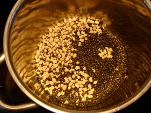 In that spirit, I made beans from scratch, in the slow cooker. As I’ve said in the past, I almost always use canned beans. (I’m actually very loyal to goya as a brand, and I think their beans are fresh and tasty. My first product endorsment!) But it’s fun to make beans from scratch, sometimes. It’s nice to use the slow cooker, on a hot day, because it doesn’t warm up the kitchen too much. And I like collards in a slow-cooked scenario, because their flavor develops nicely and they don’t turn to mush. I’ve also been on a food-quest for black cardamom, lately, and I finally got a big bag, and I was extremely eager to try it out. They’re wonderful! Big wrinkly black pods, with the most amazing smoky-sweet flavor. I love them! Their taste is milder than their smell. If you can’t find them, you can use green cardamom, or cardamom powder, and add a touch of smoked paprika, if you have it. This would probably good with rice, but I didn’t think of that at the time!