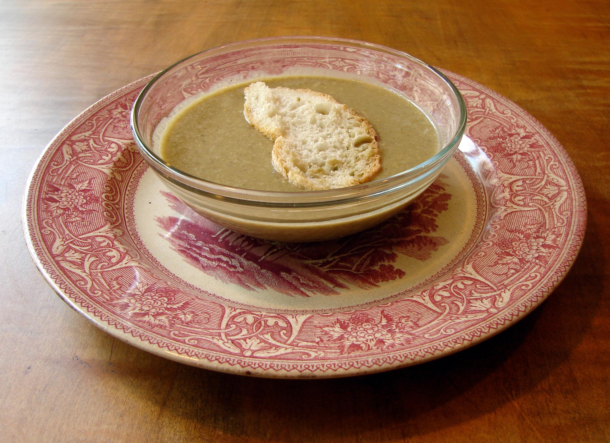 We’re watching Blues Brothers with the boys. It’s rated R, but we can’t remember why, so we’re watching it cautiously, with the remote nearby. Is it the non-stop swearing and the incredibly destructive car chases? Pshaw, my boys are used to that! We drive recklessly through a couple of malls a day around here. Actually, it might be a little rough for them, but I think they’re well aware that they can’t say all of the words that they’re hearing and that they can’t drive cars through store windows. What a pleasure to watch them watch the dancing and the singing, and all of the wonderful, contagiously happy music. It’s such a joyful movie! And I’d forgotten how sweet it is, in parts, and how good it looks. There are a few moments that have such a lovely, quiet grace about them, in the midst of all the raucousness. And, oddly, these moments seem to involve toast. In one scene, Elwood has just toasted a piece of bread in his small room in the home for itinerant men. His brother fell asleep, and he covered him with a blanket, and then sat in the window and looked out at the trains rumbling by in a watery blue light. Beautiful! Now, I love toast. I think it’s such a comforting, restorative food. The very smell of bread toasting can make you feel better. And I happen to have made a meal last night that revolved around toast! And lettuces, lots and lots of lettuces. We got about 7 heads of red leaf lettuce from the CSA, and I’m actually very excited about it. I love salad, as I’ve said many a time, but I also like the challenge of turning lettuce into a non-salad meal. We happened to eat two in the same meal last night, but they were both very tasty, so nobody seemed to mind.