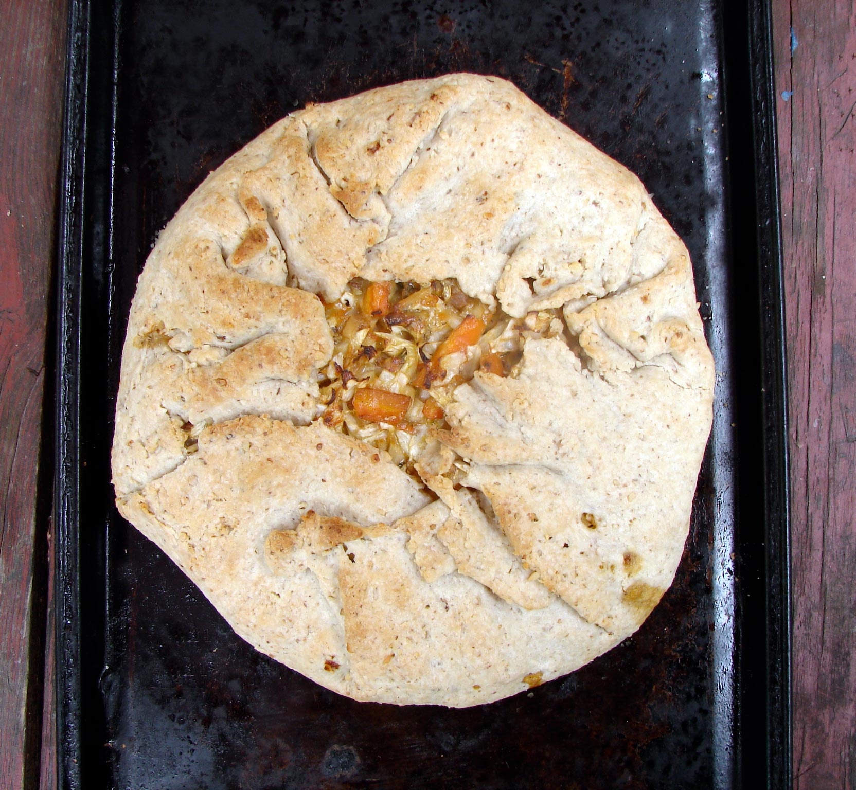 Cabbage and potato galette with a walnut crust