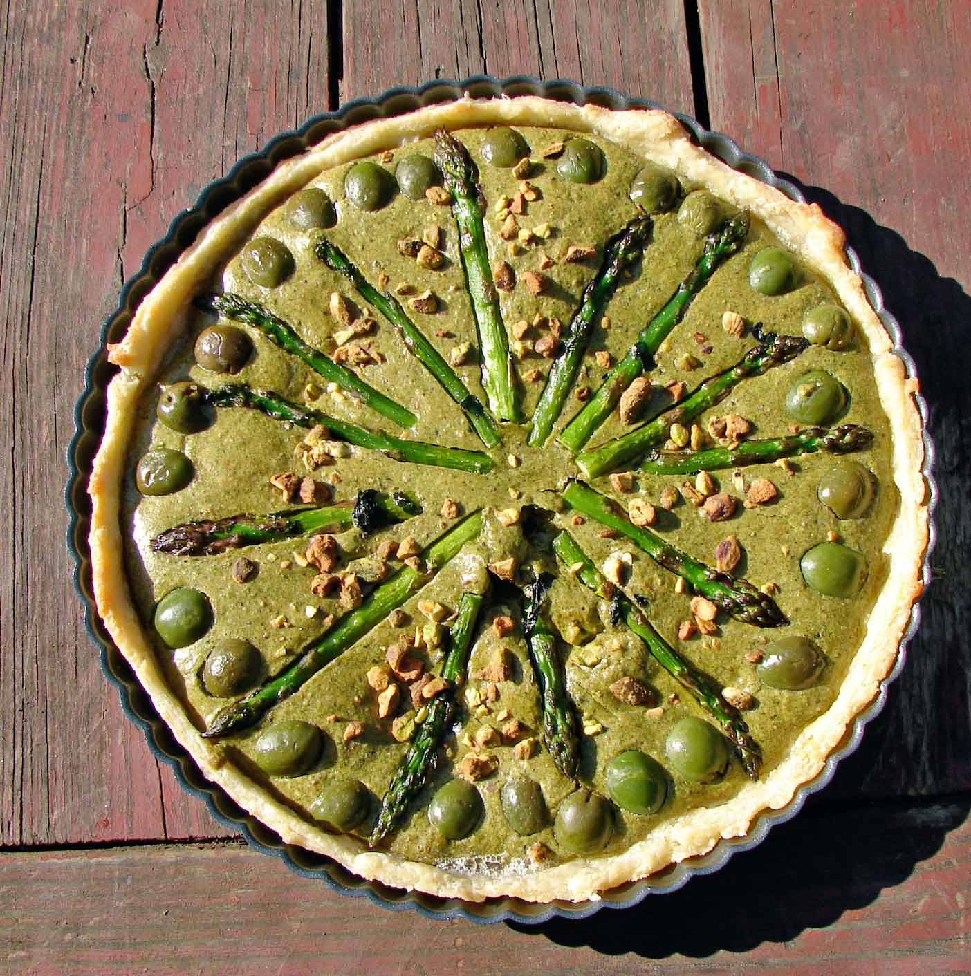 Asparagus pistachio castelvetrano tart